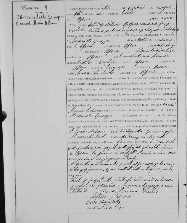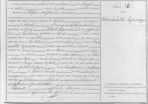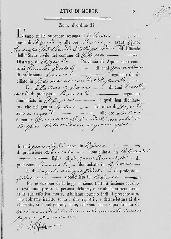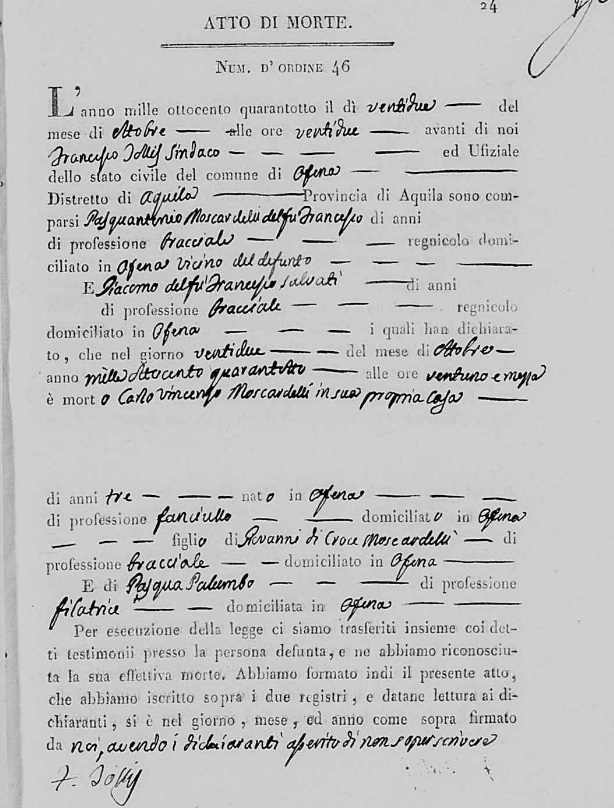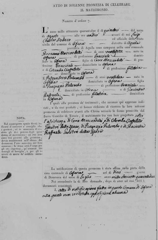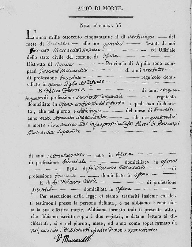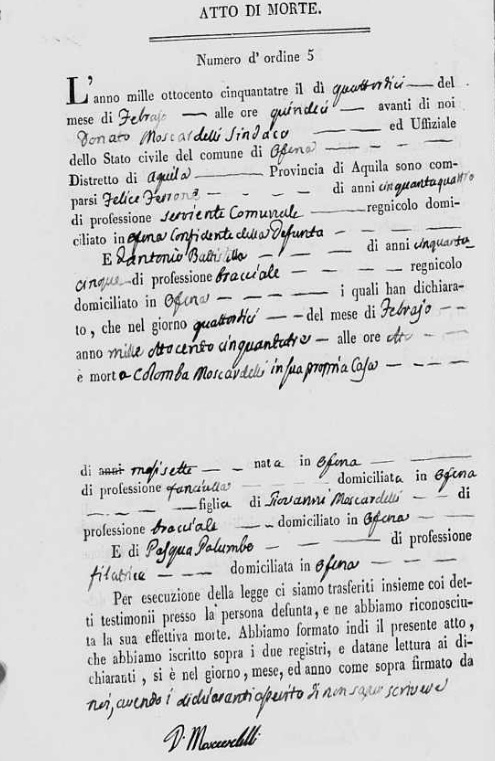 Giovanni Moscardelli were married on August 15, 1842 in Ofena, L'Aquila, Abruzzo, Italy. She died.