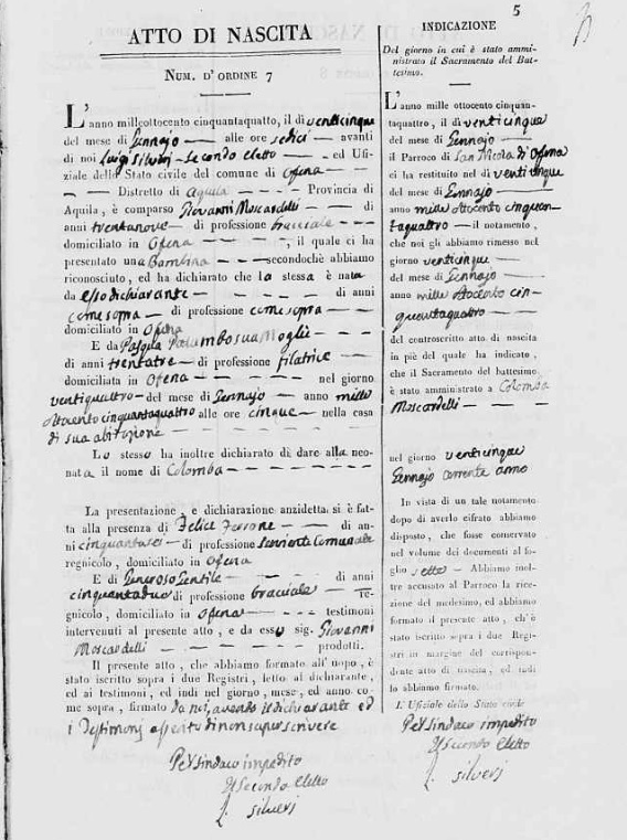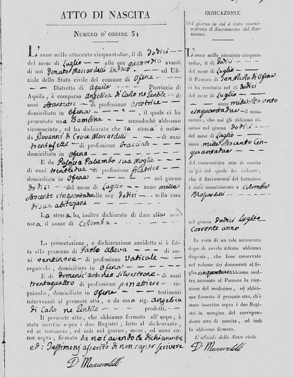 | Daughter | Colomba Moscardelli Born: July 12, 1852, Died: February 14, 1853 |