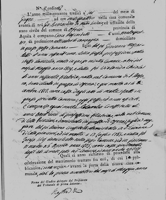 Croce Moscardelli were married on June 5, 1813 in Ofena, L'Aquila, Abruzzo, Italy. She died.