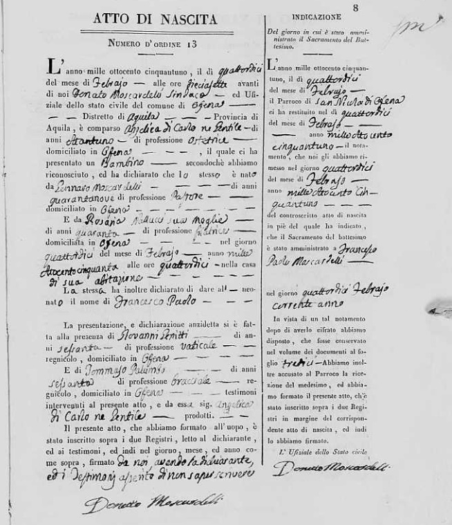 Francesco Paolo Moscardelli was born on February 14, 1851 in Ofena, L'Aquila, Abruzzo, Italy. He died.