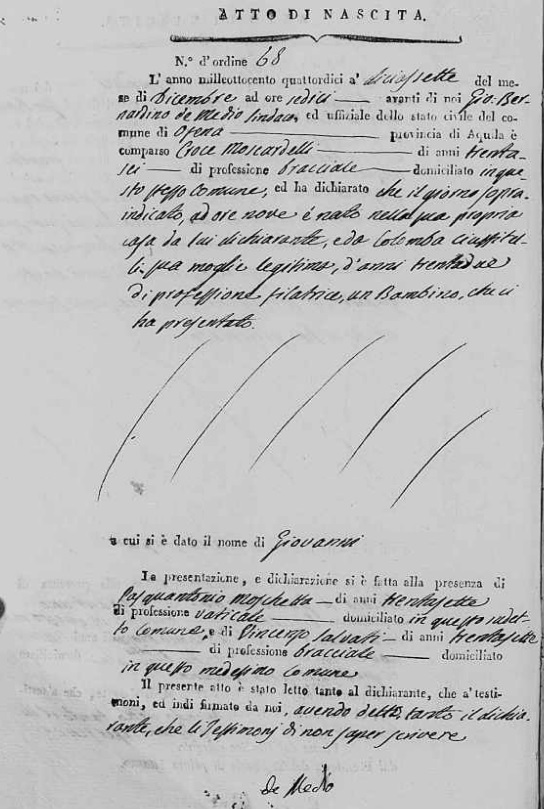 Croce Moscardelli was born in 1778 in Ofena, L'Aquila, Abruzzo, Italy. He and