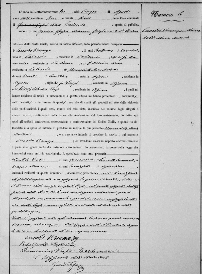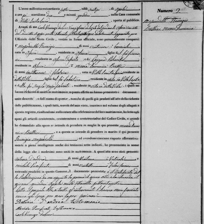 Maria Domenica Butticci were married on April 15, 1877 in Ofena, L'Aquila, Abruzzo, Italy. He died.