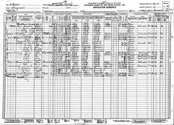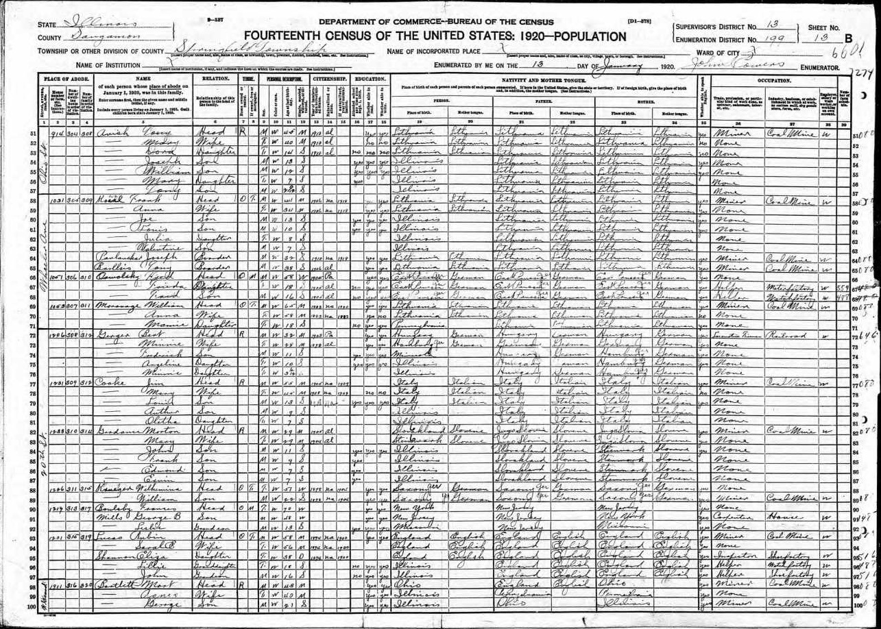 Cucchi Family 1920 Federal Census Illinois, Lines 77-81