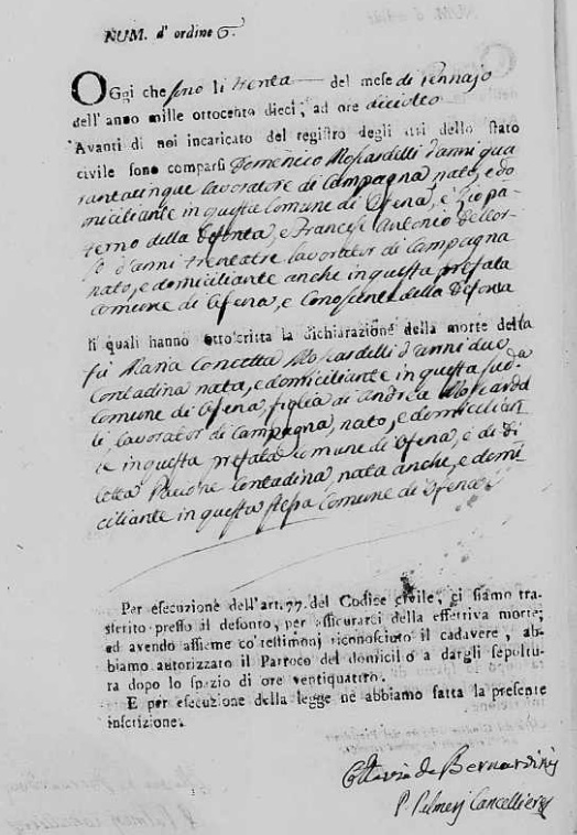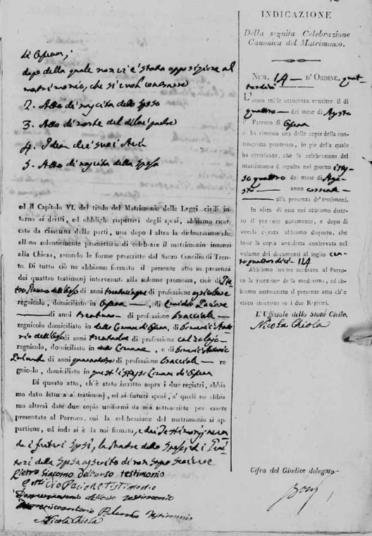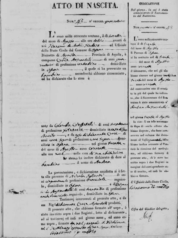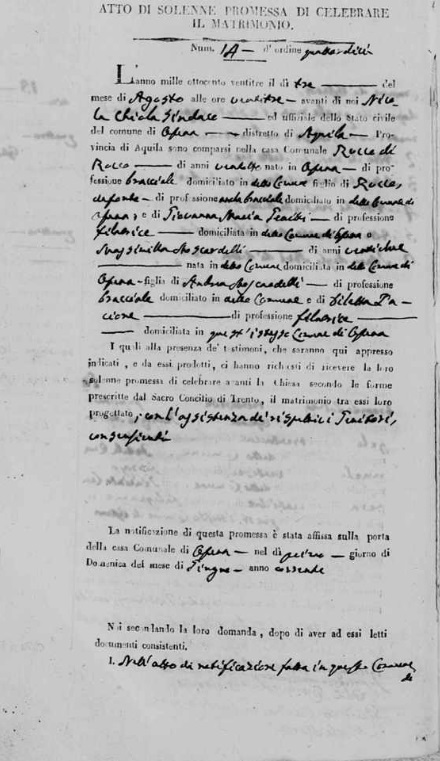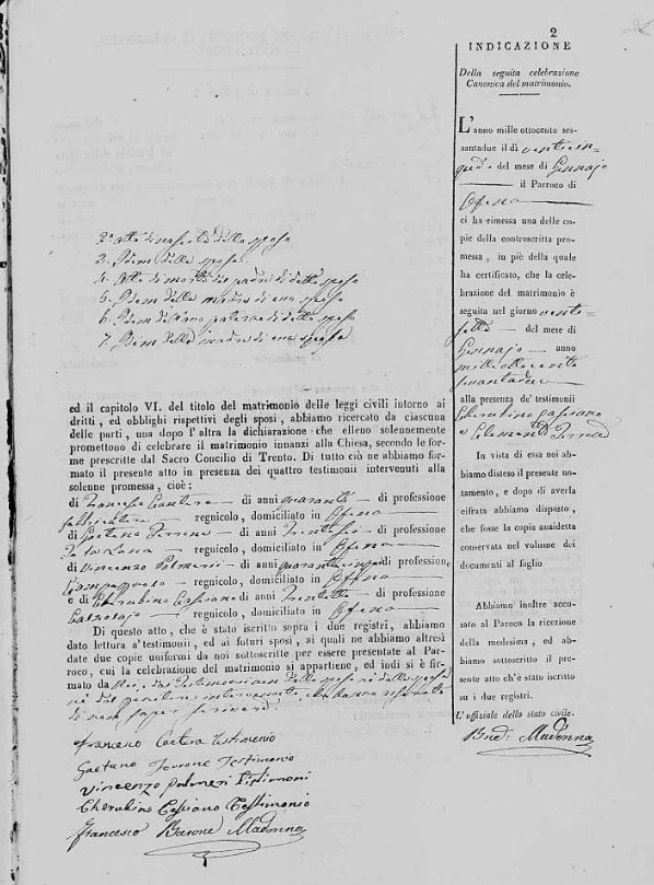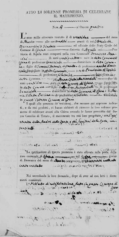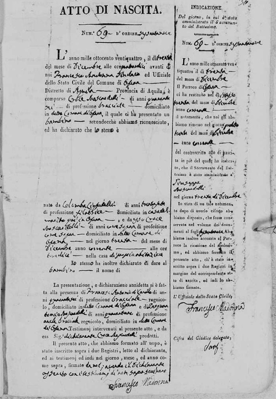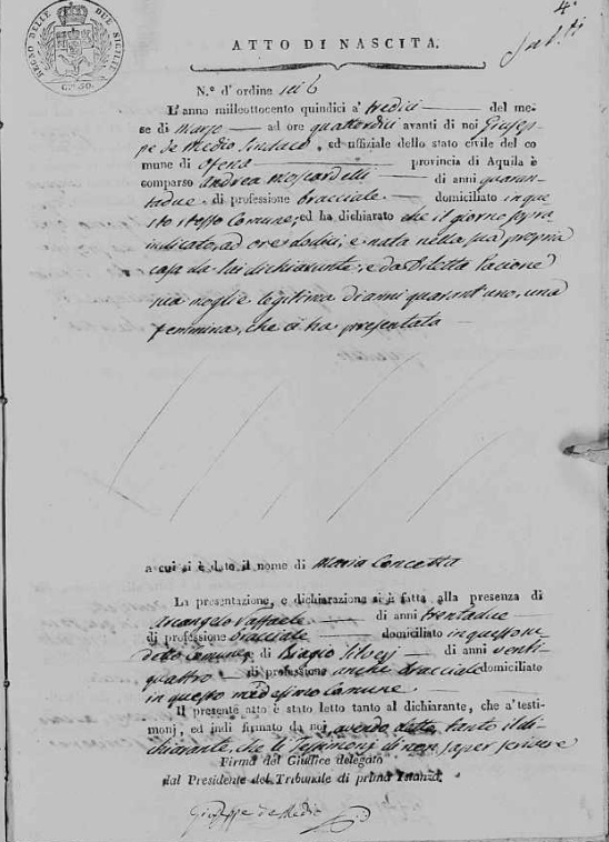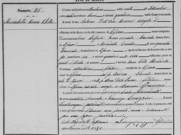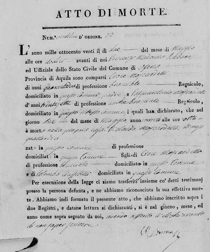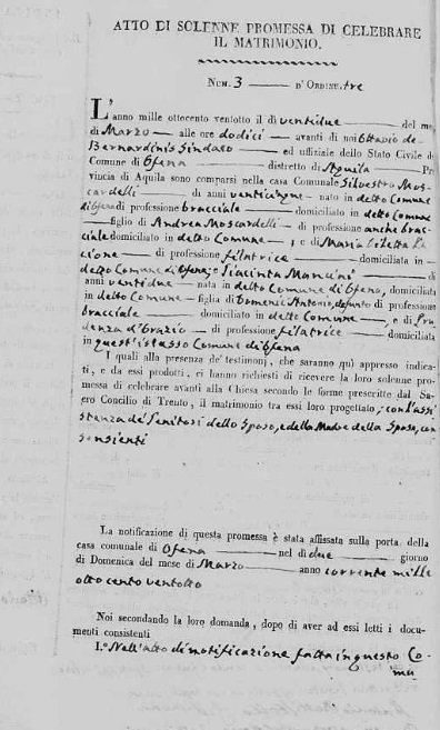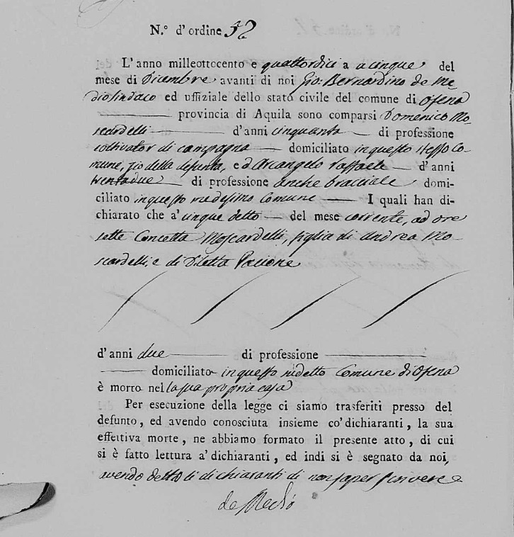 Maria Concetta Moscardelli were married on February 14, 1836 in Ofena, L'Aquila, Abruzzo, Italy. He died.
