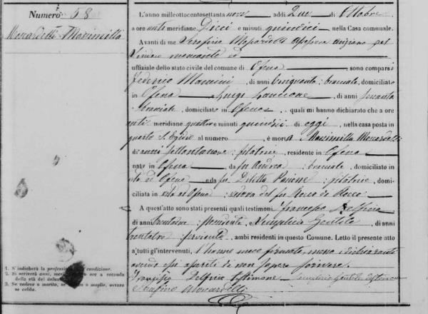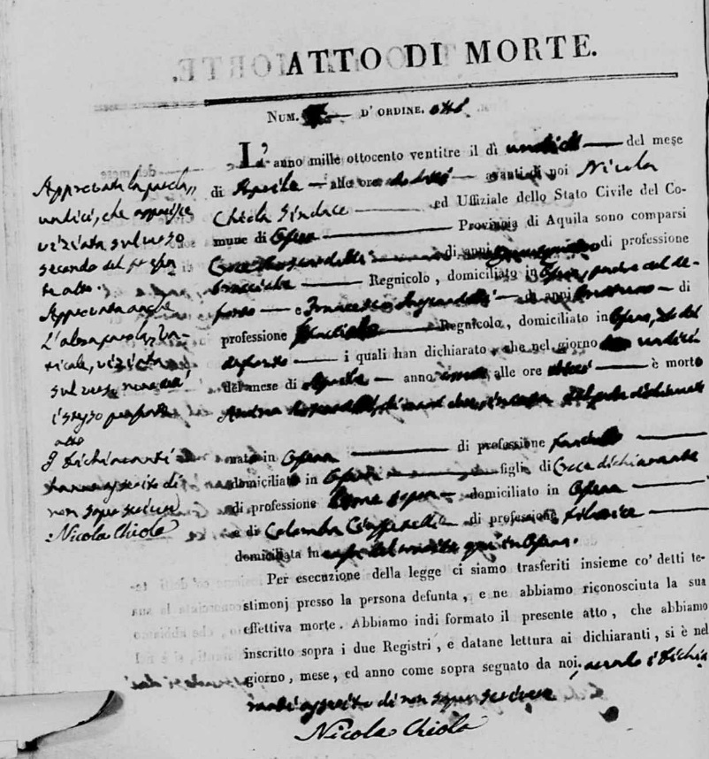 Giacinta Mancini were married on March 22, 1828 in Ofena, L'Aquila, Abruzzo, Italy. He died.