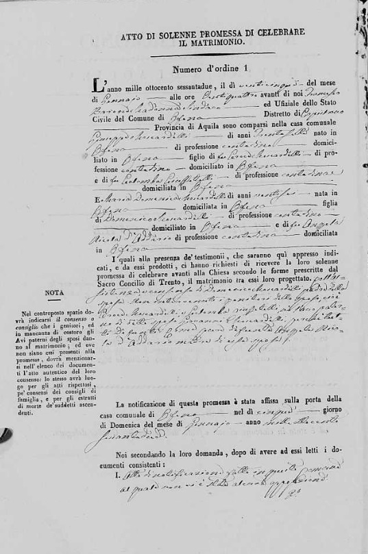 Giuseppe Moscardelli were married on January 25, 1862 in Ofena, L'Aquila, Abruzzo, Italy. She died.