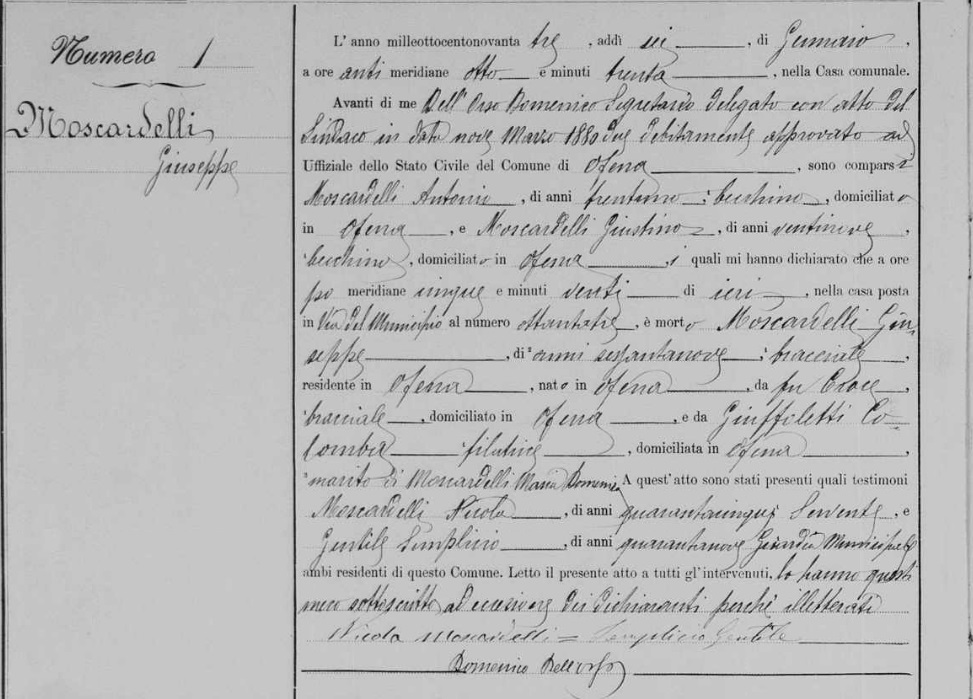 Family: Giuseppe Moscardelli Born: December 27, 1824, Died: January 6, 1893