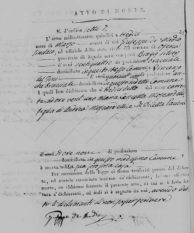 Silvestro Moscardelli were married on March 22, 1828 in Ofena, L'Aquila, Abruzzo, Italy. She died.