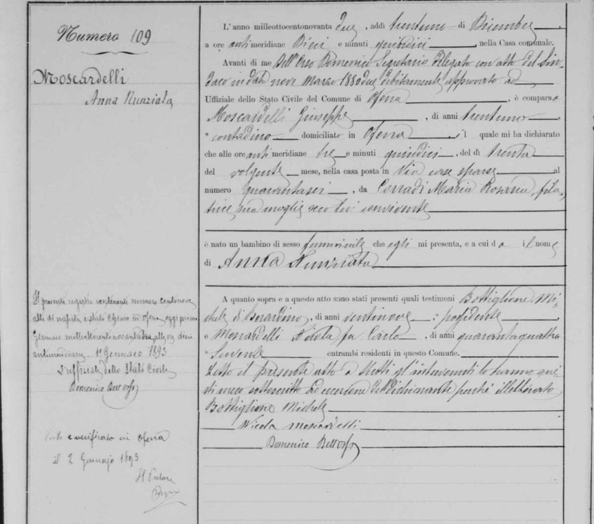 | Daughter | Anna Nunziata Moscardelli Born: January 1, 1893 |
