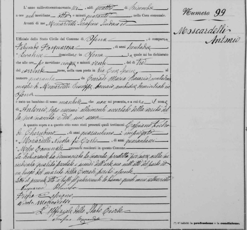 Antonio Moscardelli was born on December 3, 1896 in Ofena, L'Aquila, Abruzzo, Italy. He and