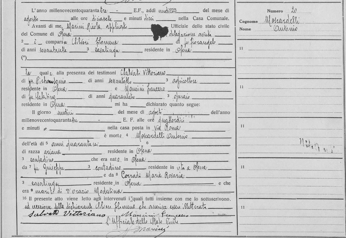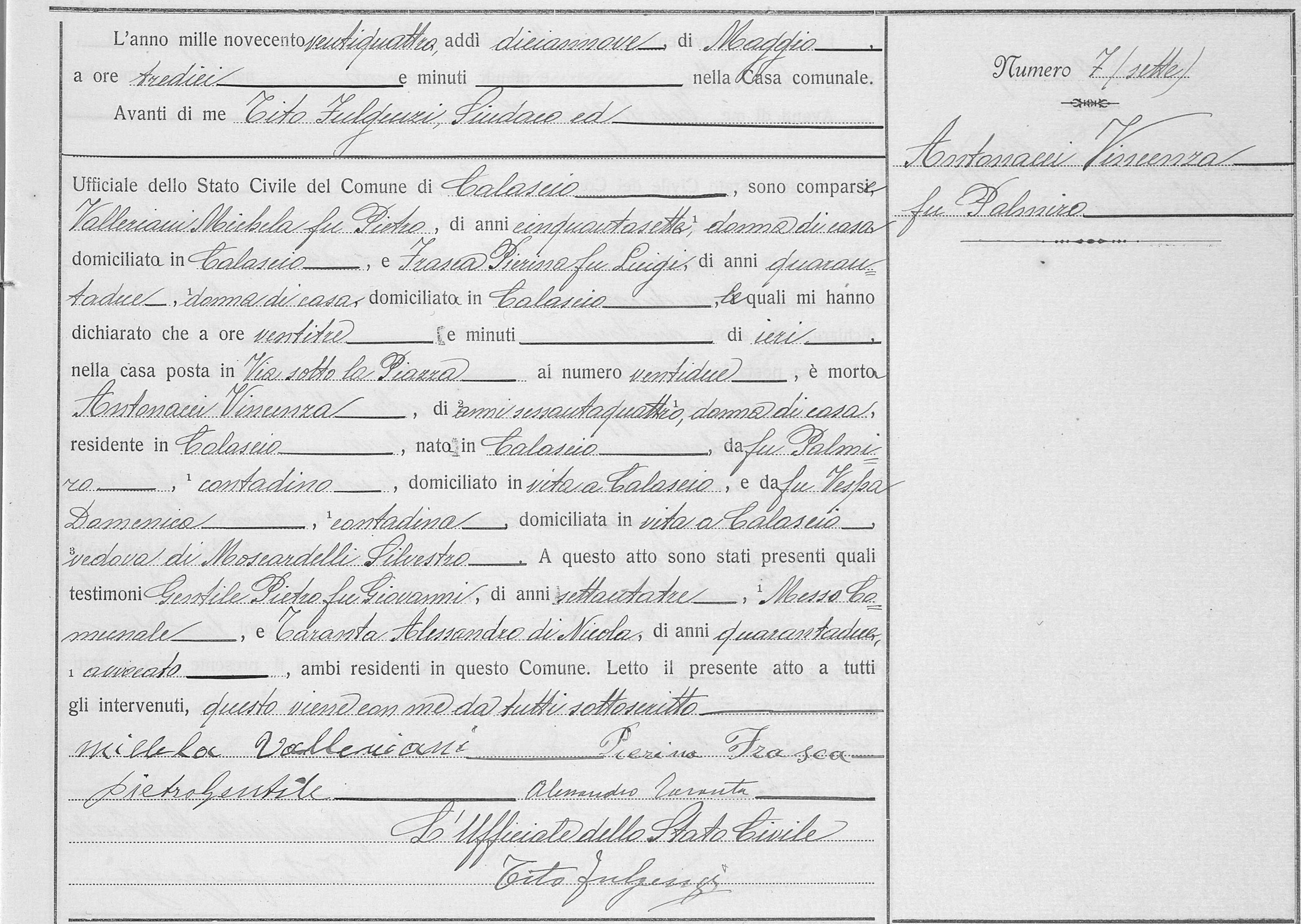 Modestina D'Orazio were married. He died on August 11, 1943, at age 46, in Ofena, L'Aquila, Abruzzo, Italy.