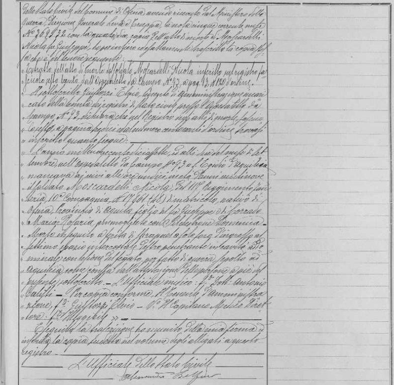 Nicola Moscardelli were married on September 28, 1914 in Ofena, L'Aquila, Abruzzo, Italy. She died.