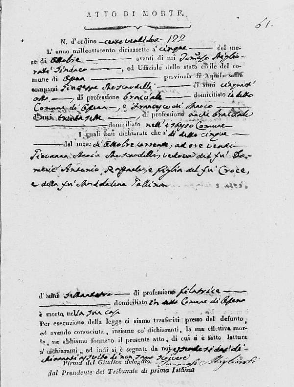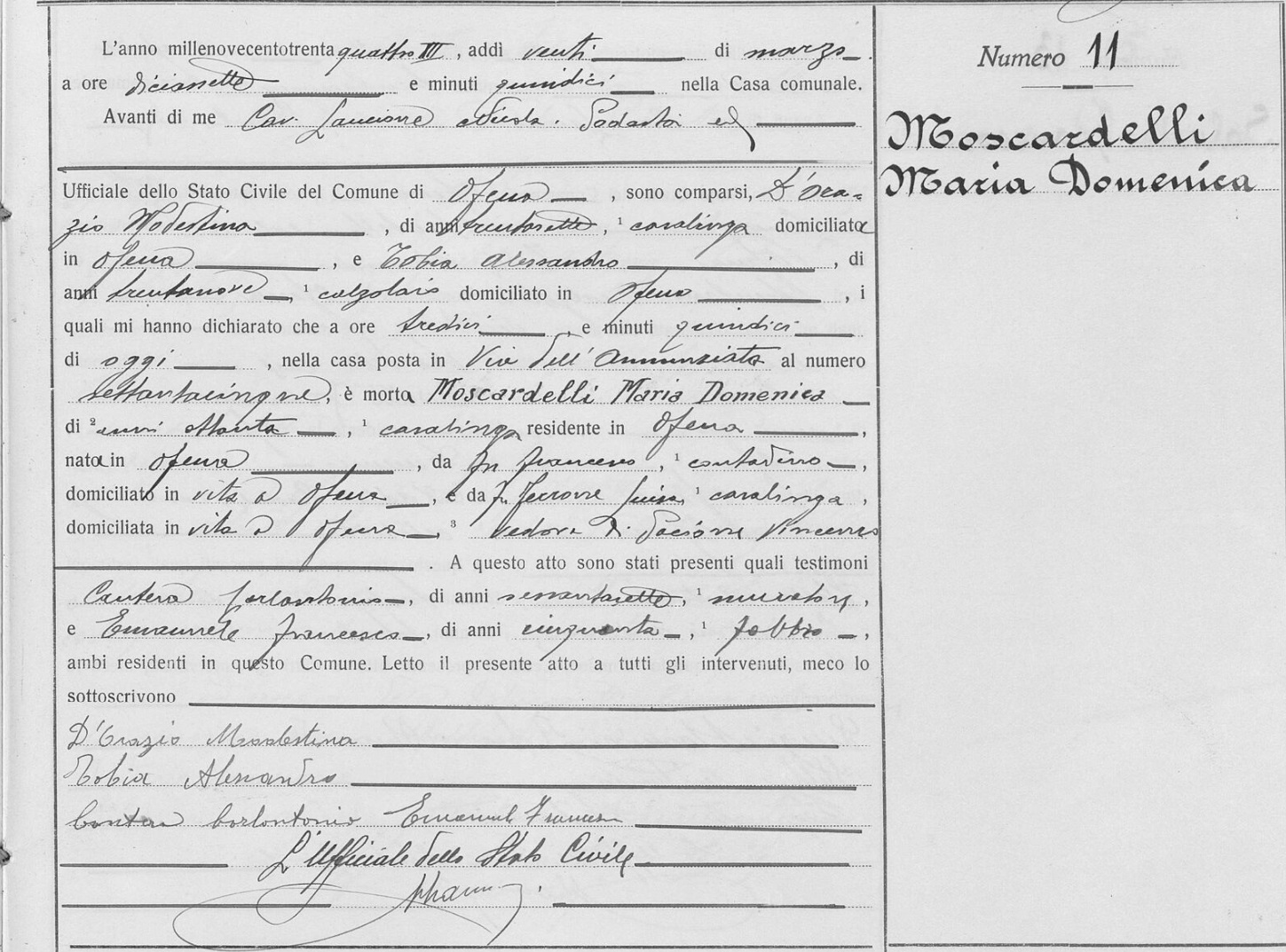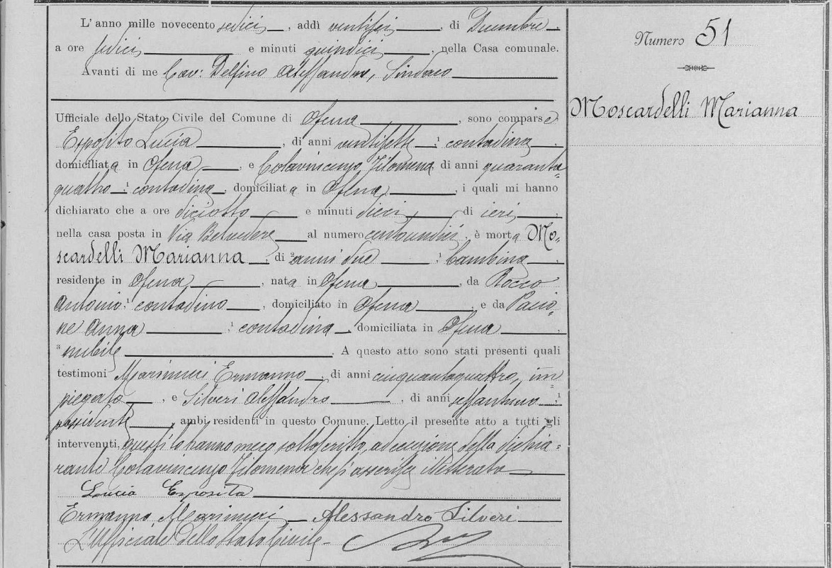 Rocco Antonio Moscardelli were married on January 27, 1912 in Ofena, L'Aquila, Abruzzo, Italy. She died.