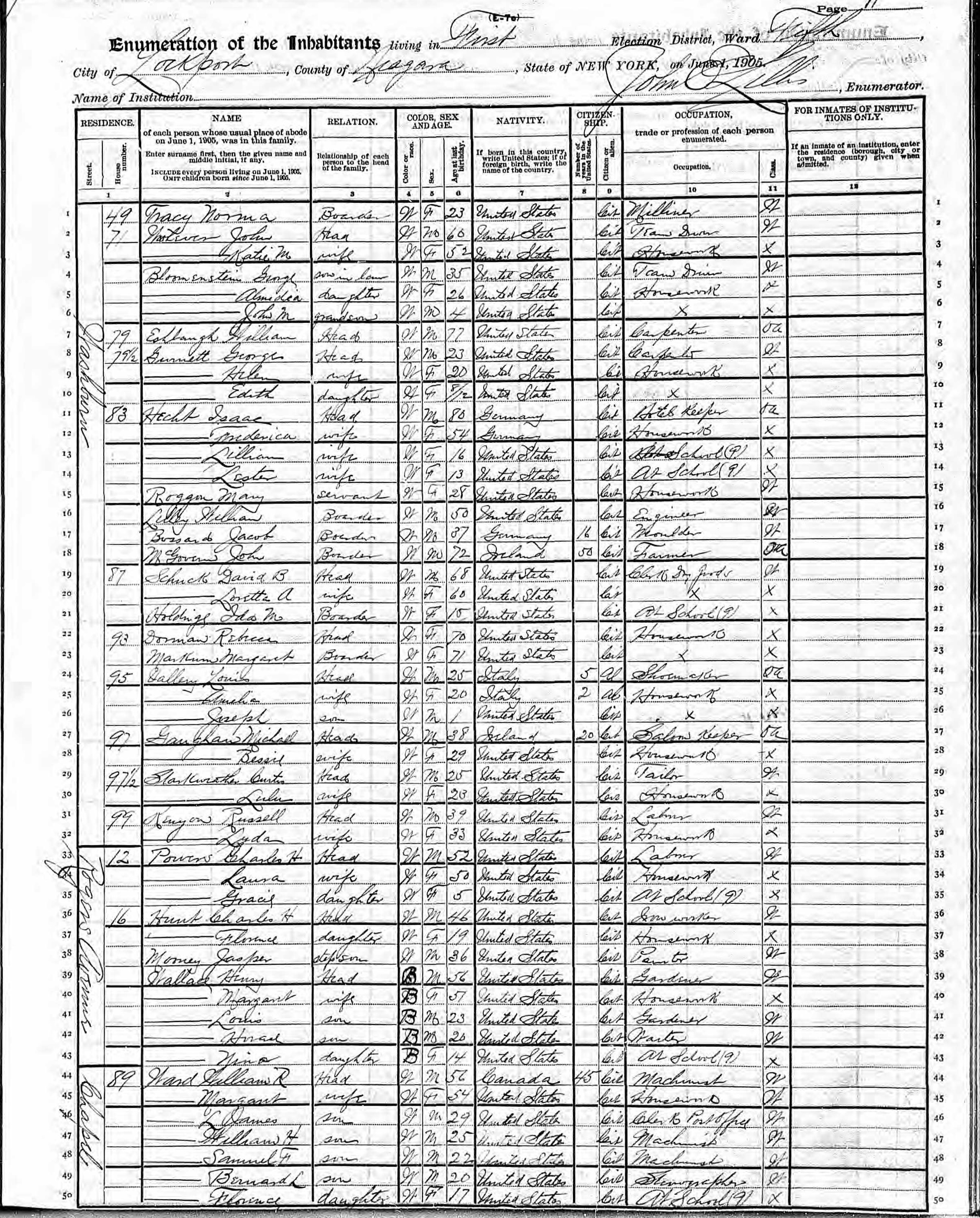 Valeri Family 1915 State Census New York, Lines 49-50