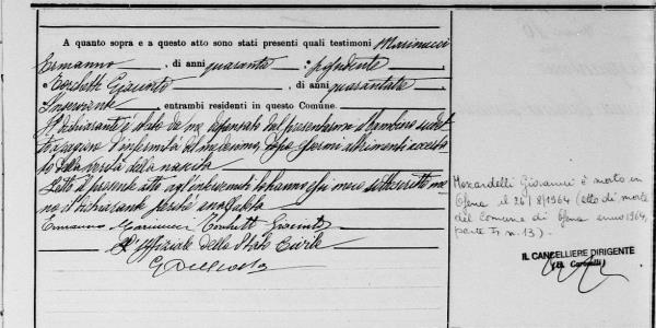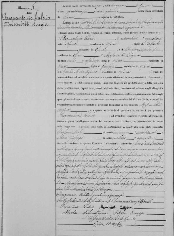 Luigia Moscardelli were married on January 19, 1905 in Ofena, L'Aquila, Abruzzo, Italy. He died.