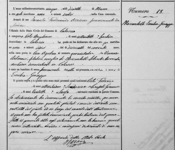 Emilia Giuseppa Moscardelli was born on March 17, 1885 in Calascio, L'Aquila, Abruzzo, Italy. She and