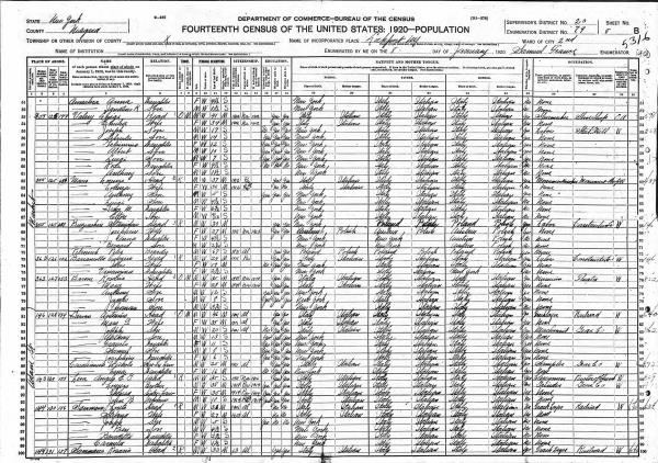 Valeri Family 1910 Federal Census New York, Lines 63-69