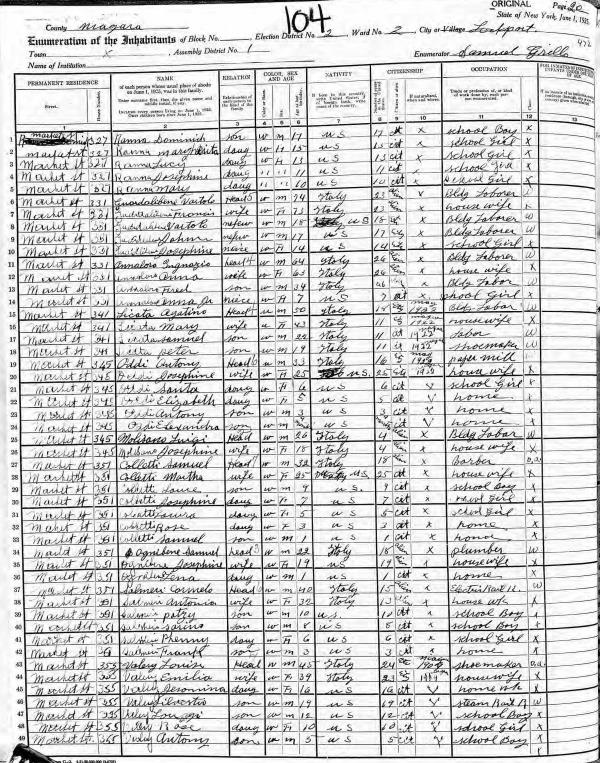 Valeri Family 1920 Federal Census New York, Lines 53-61