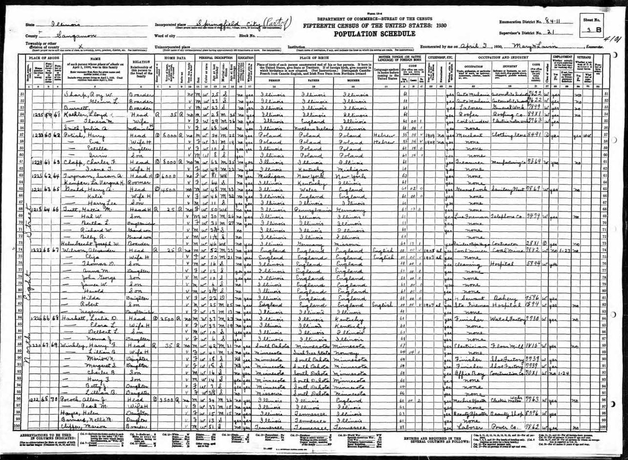 Wilson Family 1930 Federal Census Illinois, Lines 74-83