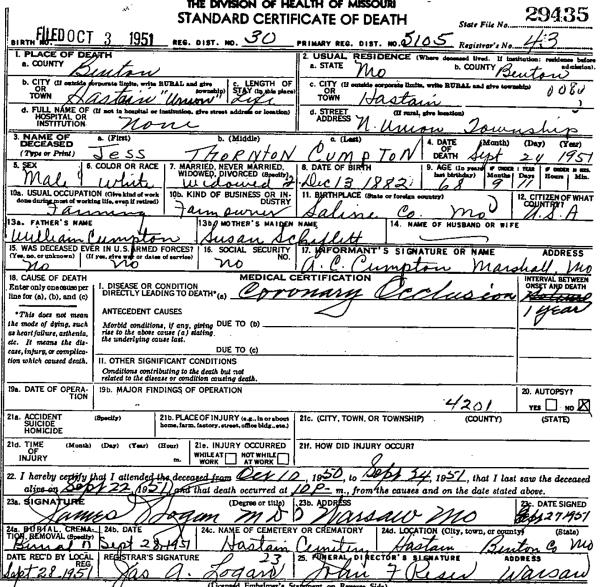 Jesse Thornton Cumpton was born on December 13, 1883 in Saline, Missouri, USA. He and
