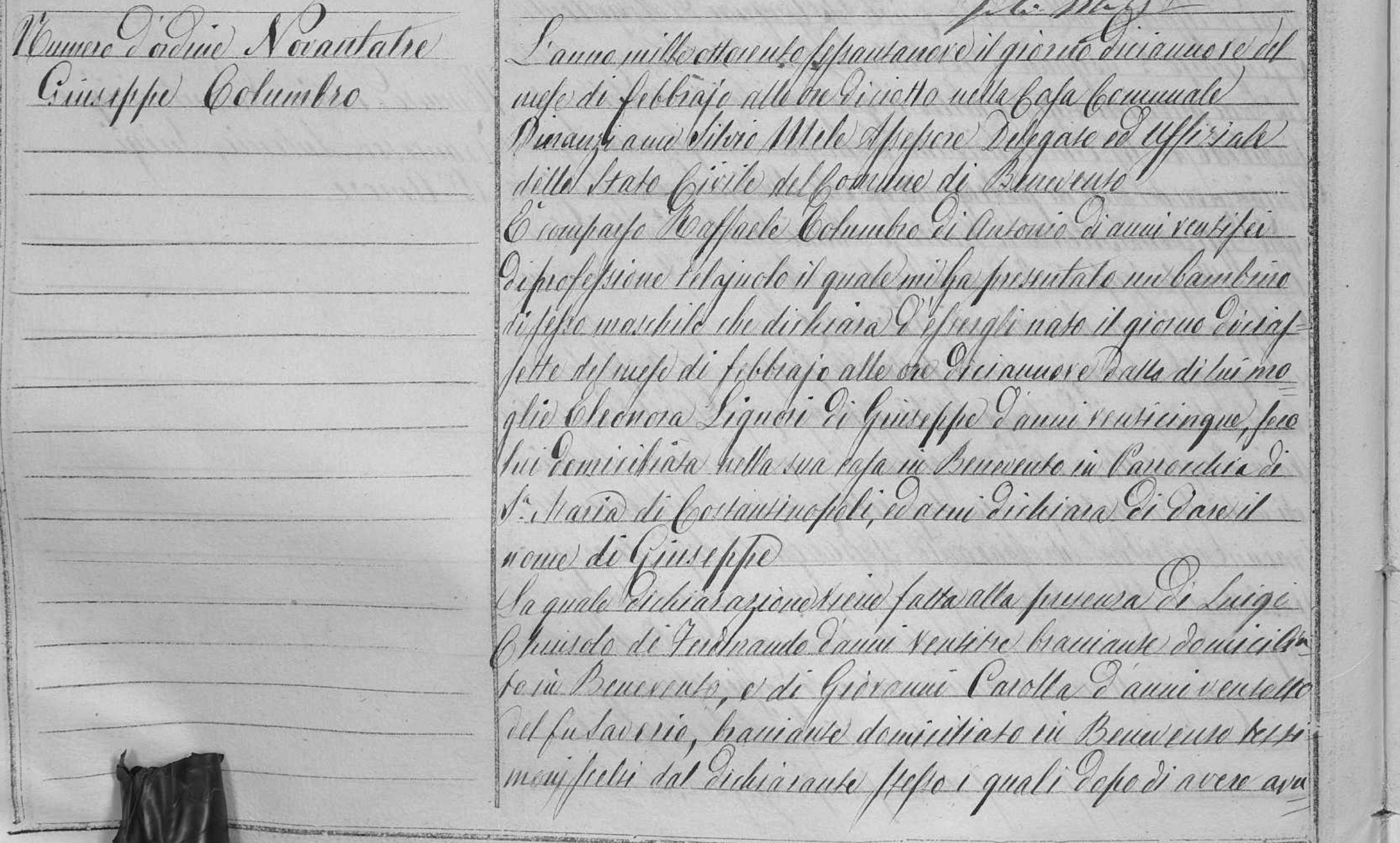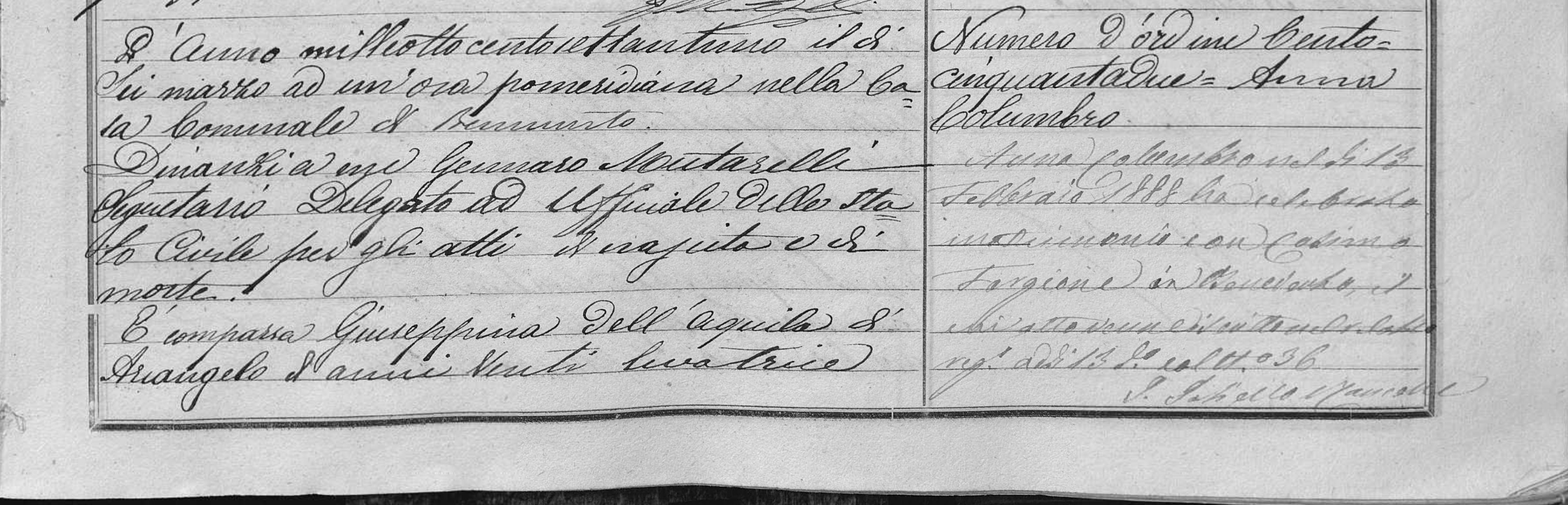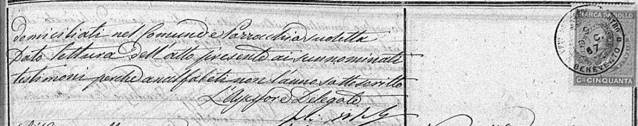 Assunta Maria Domenica Addolorata Columbro were married on July 16, 1885 in Benevento, Benevento, Campania, Italy. He died.
