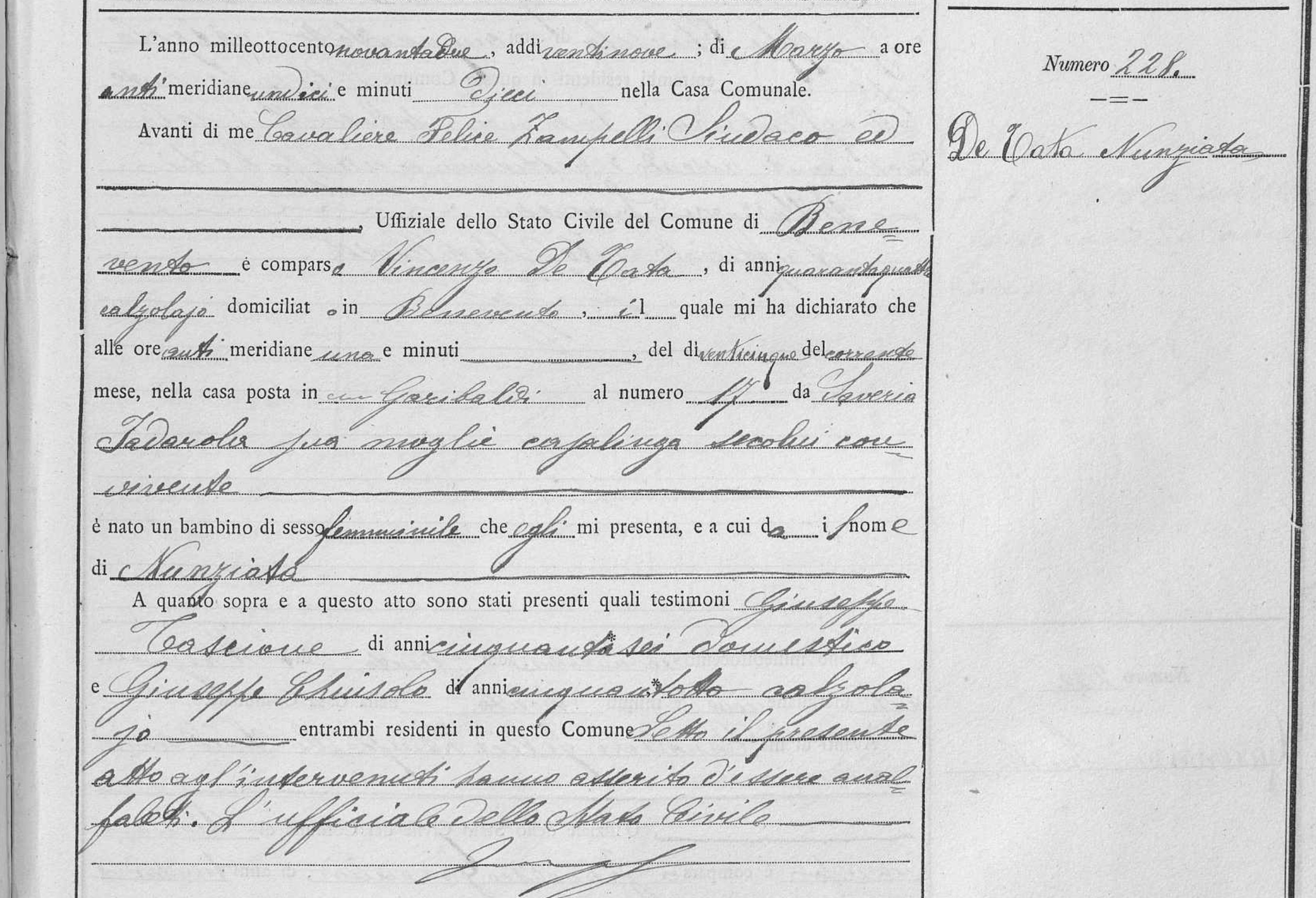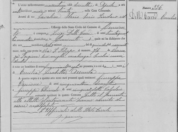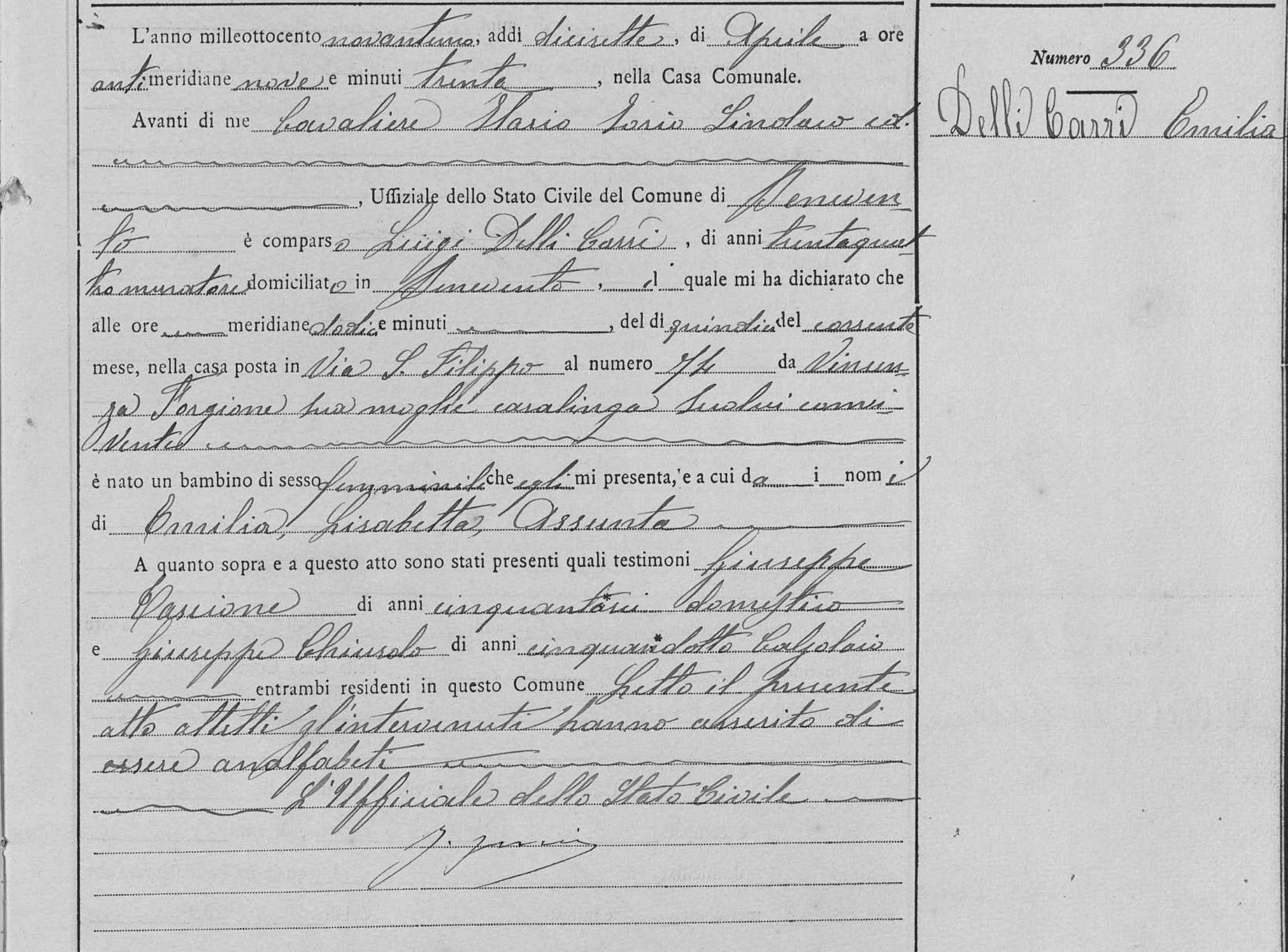 | Daughter | Emilia Lisabetta Assunta Delli Carri Born: April 15, 1891 |