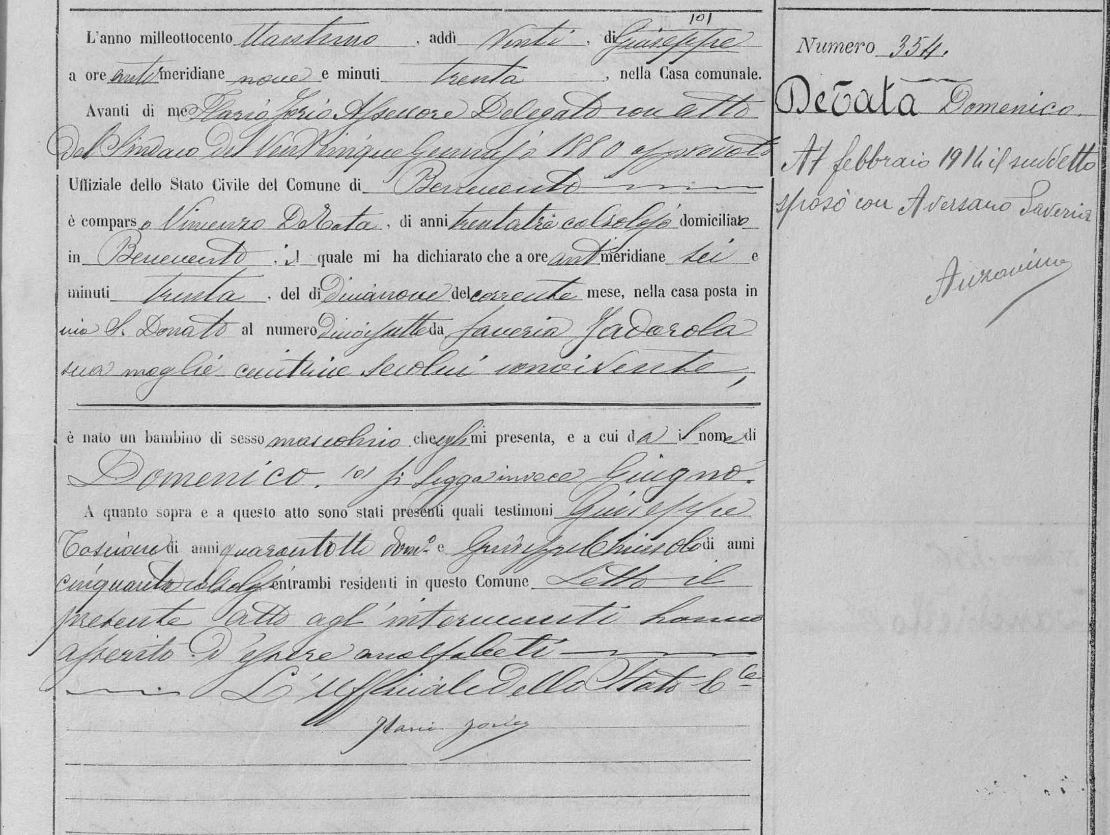 Domenico De Tata was born on June 19, 1881 in Benevento, Benevento, Campania, Italy. He and
