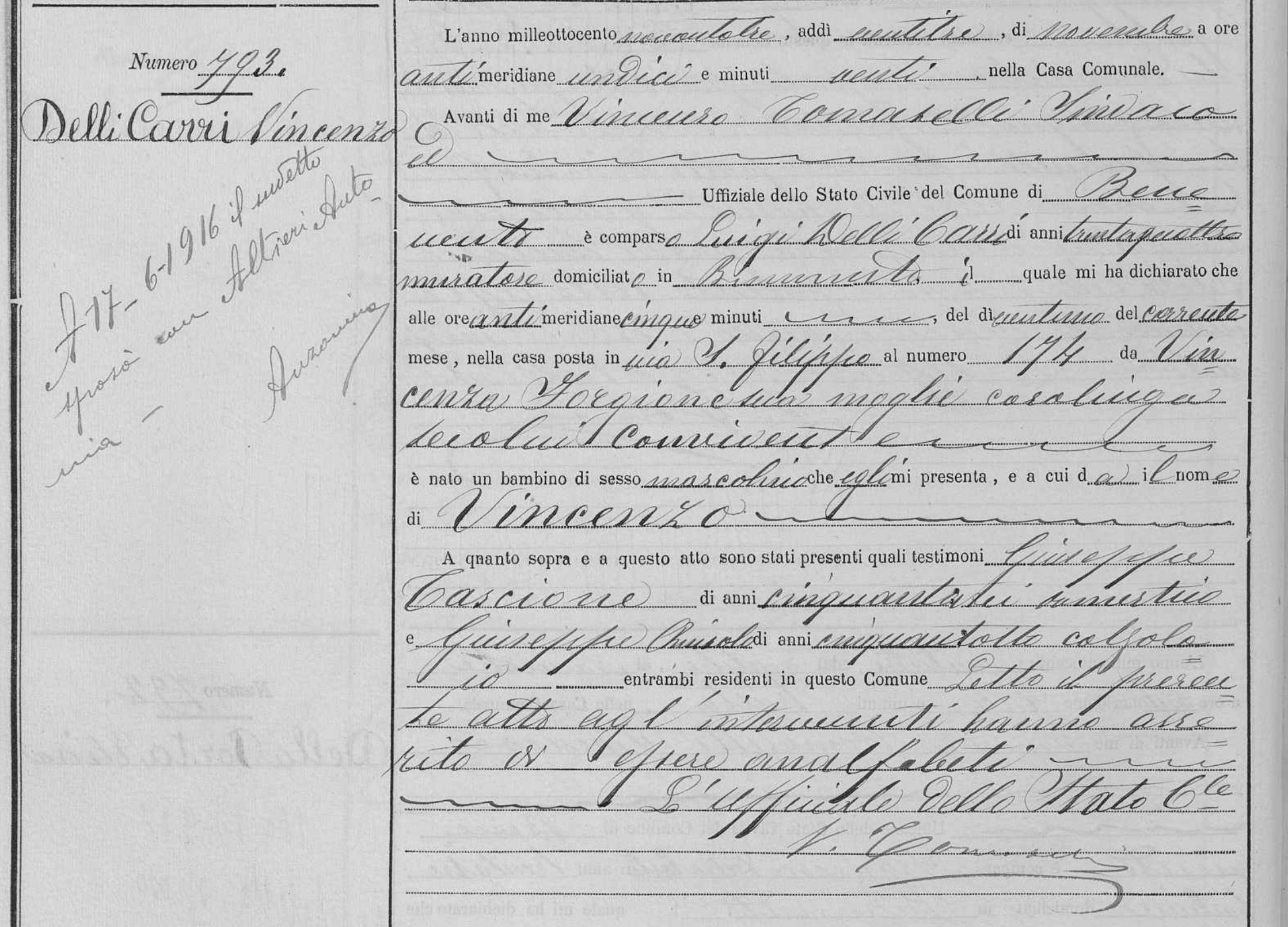 Vincenzo Delli Carri was born on November 21, 1893 in Benevento, Benevento, Campania, Italy. He and
