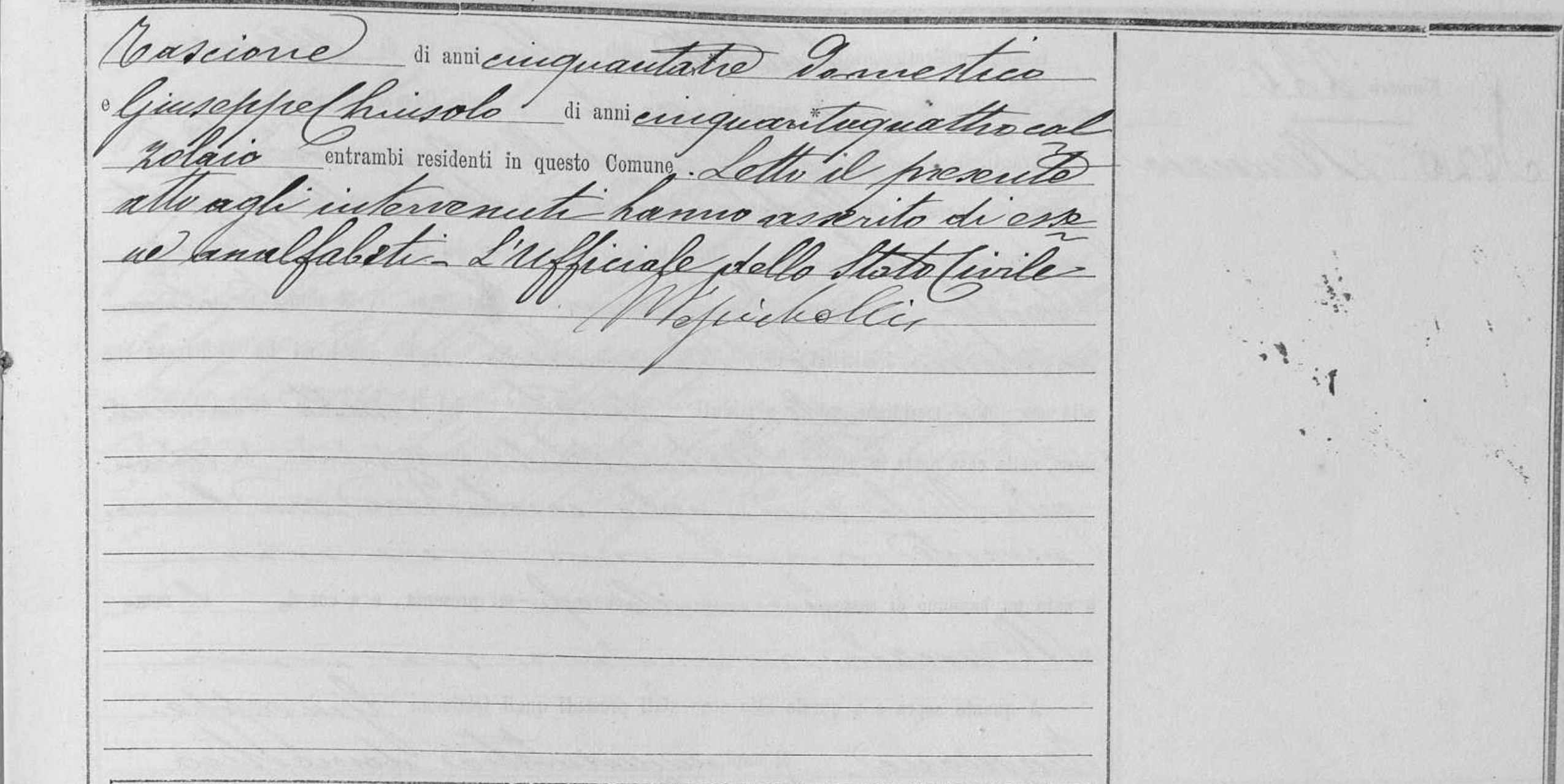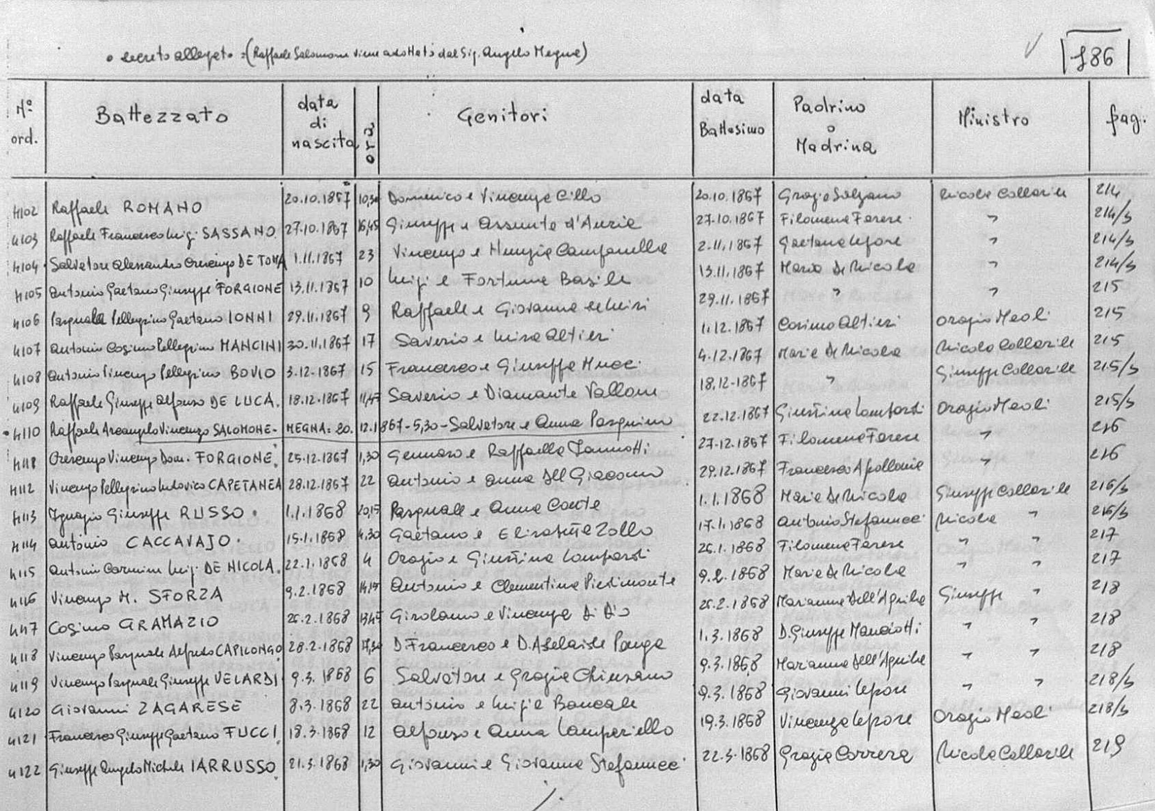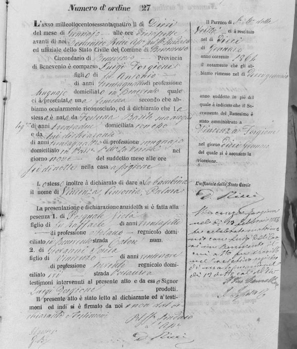 Vincenza Antonia Palma Forgione were married on February 13, 1886 in Benevento, Benevento, Campania, Italy. He died.