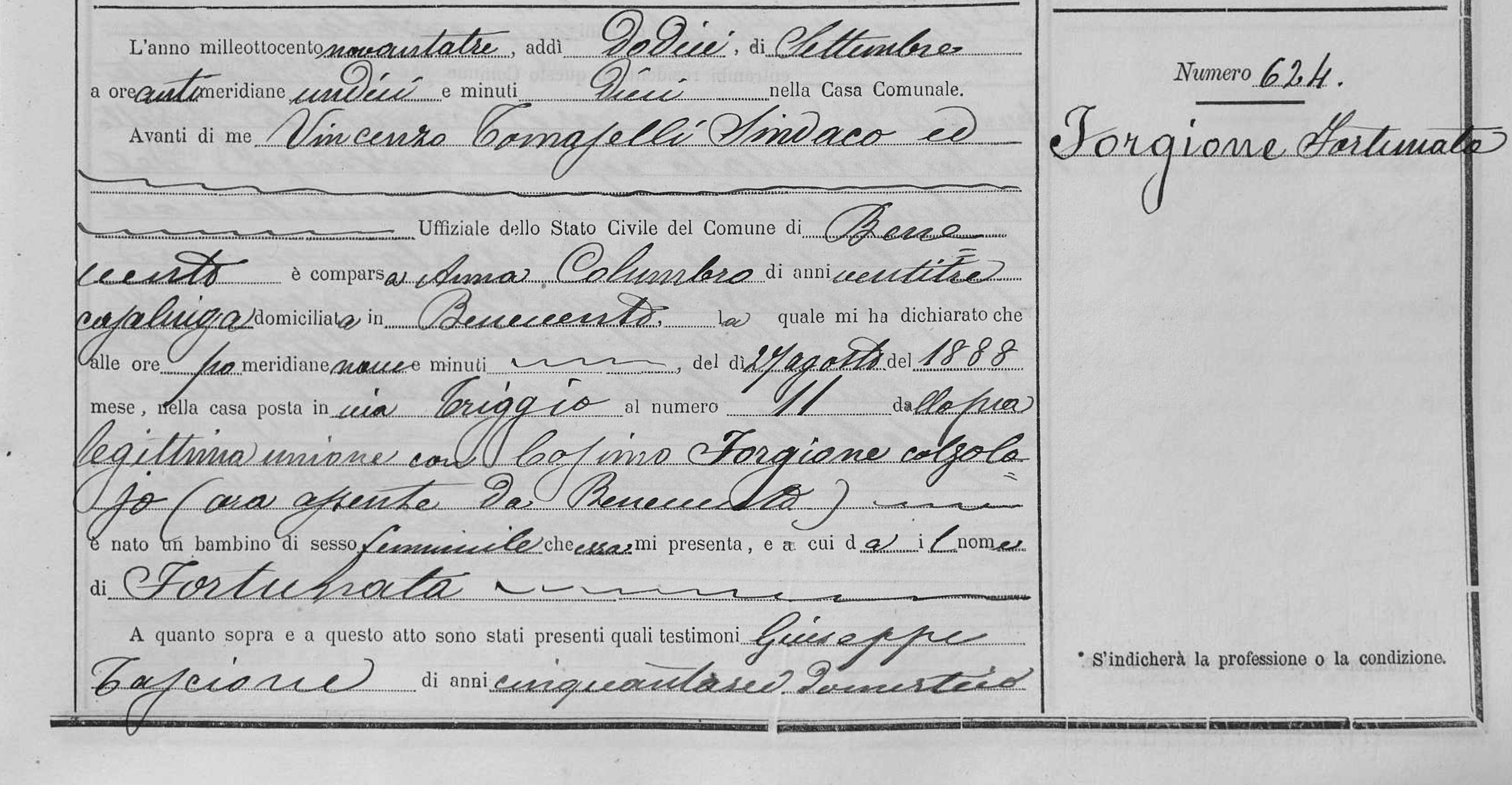 Fortunata Forgione was born on August 27, 1888 in Benevento, Benevento, Campania, Italy. She died.