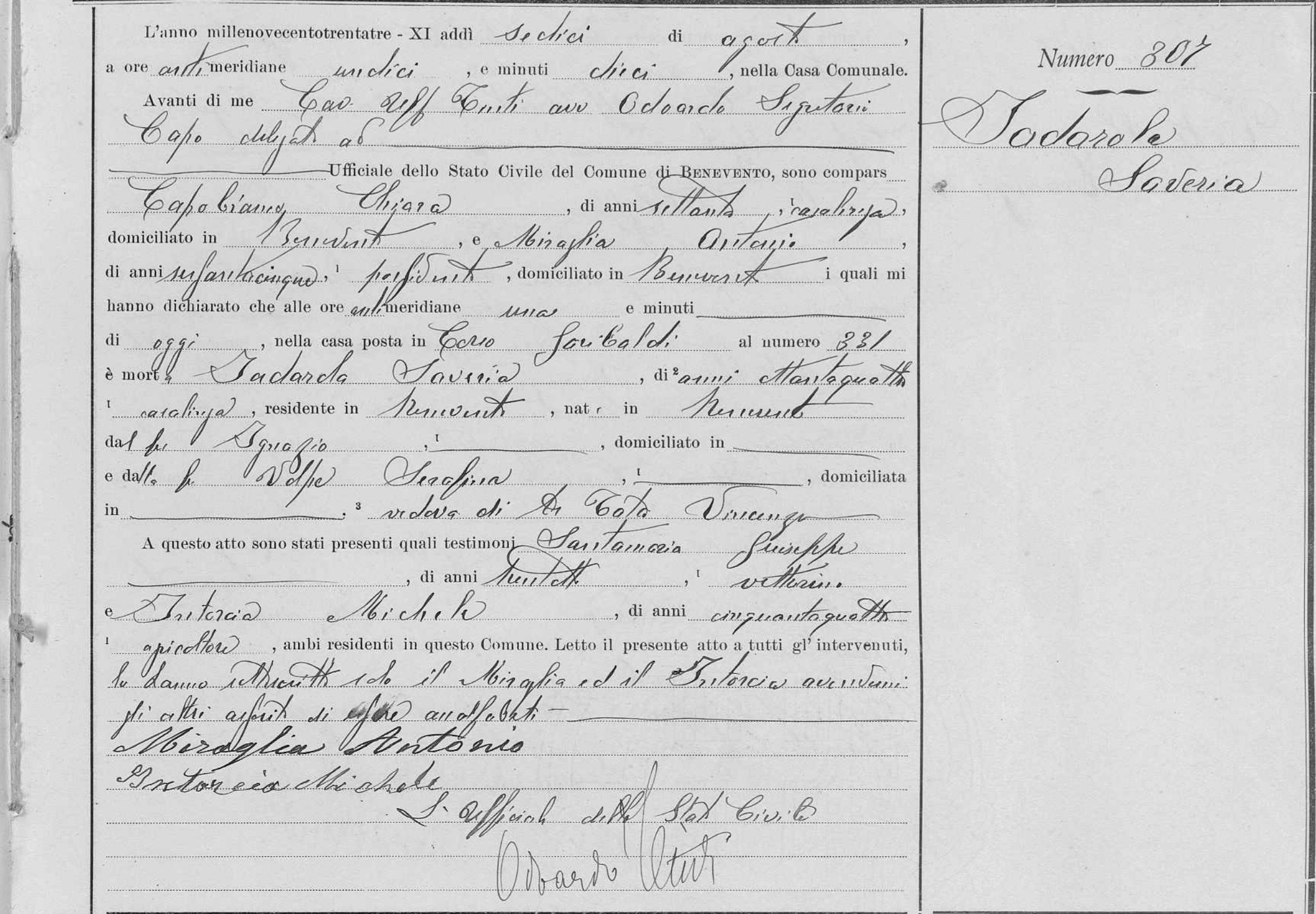Saveria Iadarola was born in 1849 in Benevento, Benevento, Campania, Italy. She and