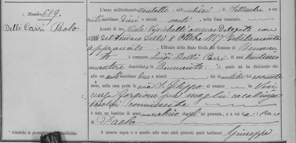 | Son | Paolo Delli Carri Born: September 23, 1888 |