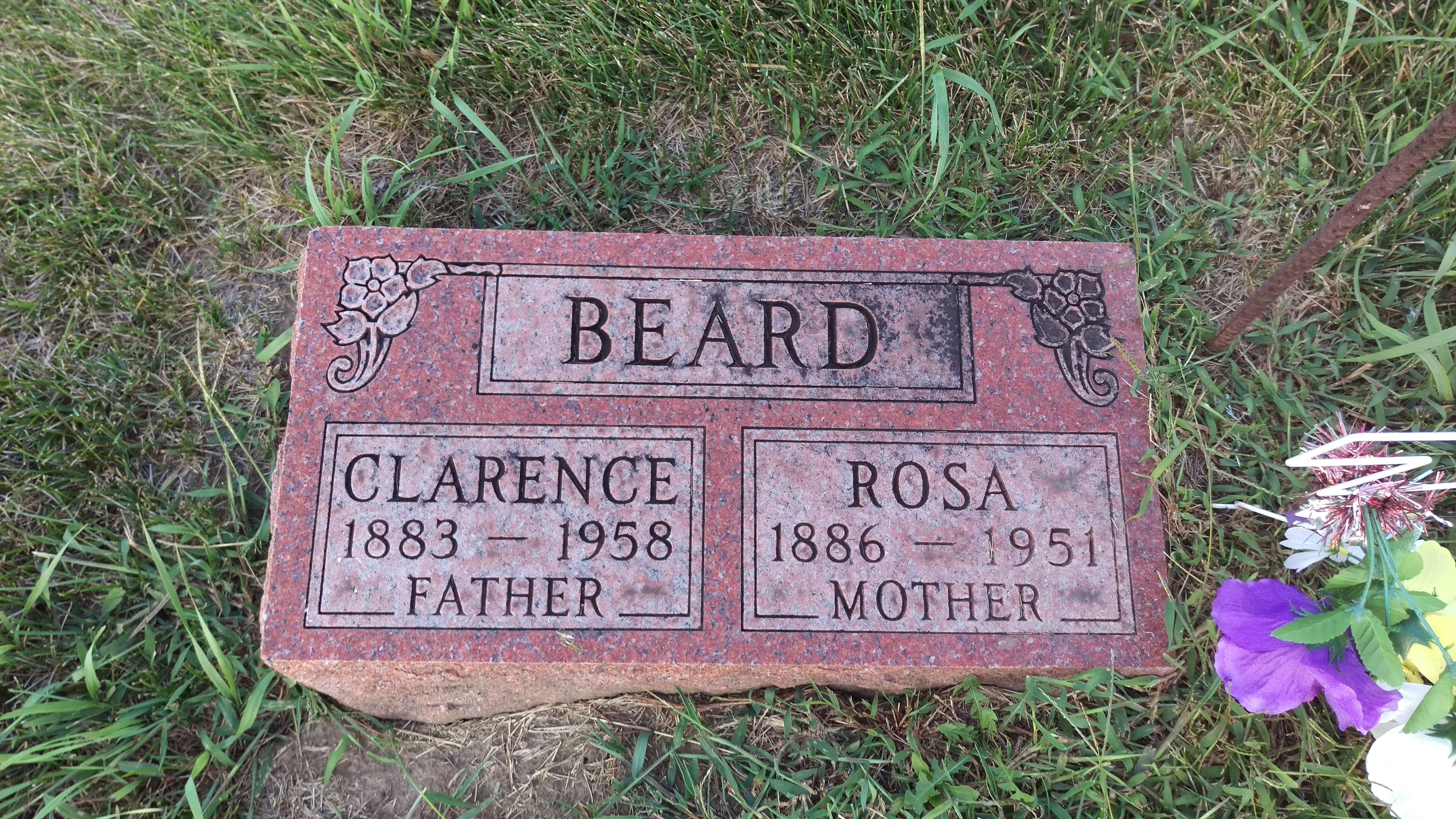 Clarence Owen Beard were married. She died in 1951, at age ~65. She was buried in Farmington Cemetery, Pleasant Plains, Illinois.