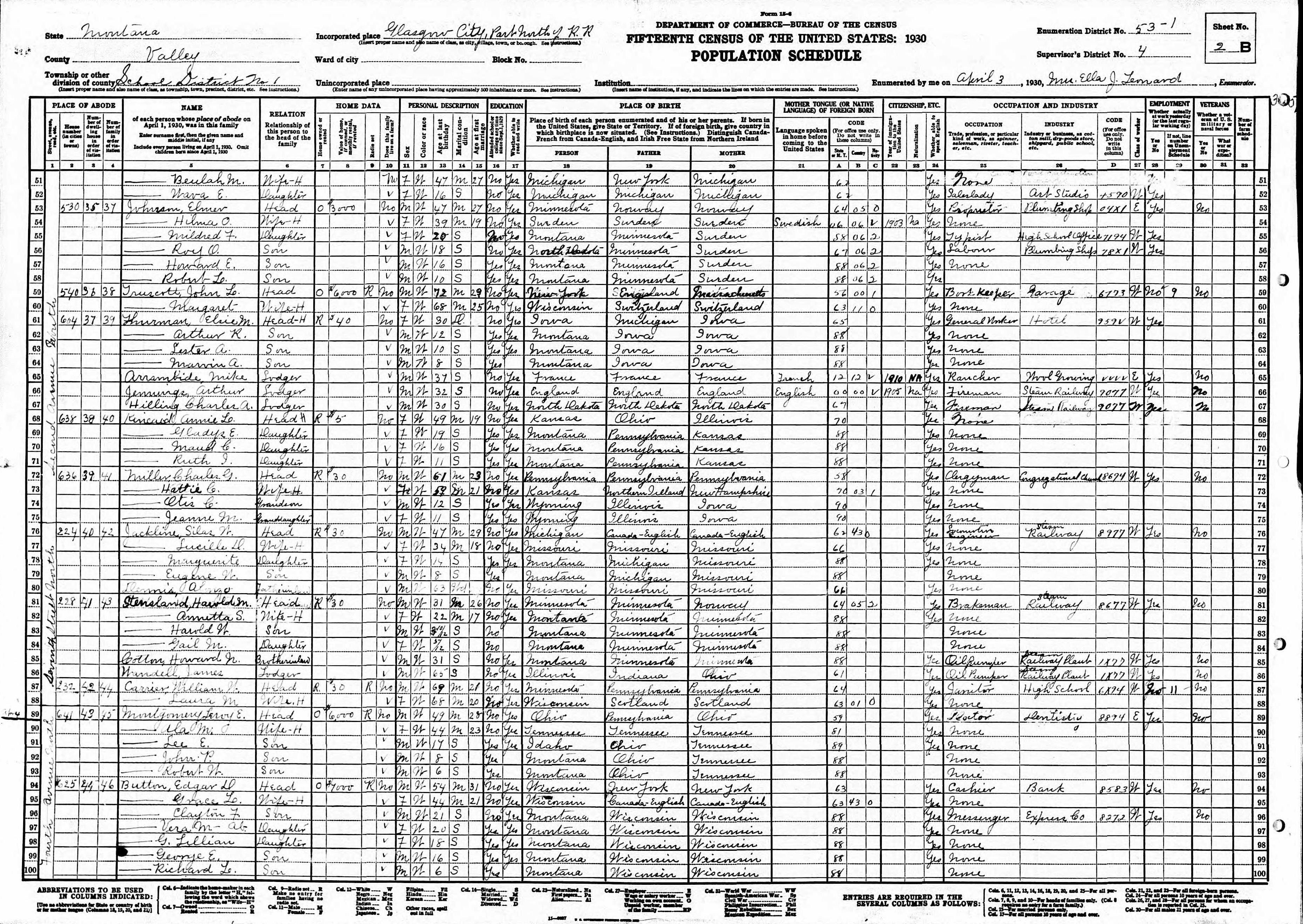 Jackline Family 1930 Federal Census Montana, Lines 76-80