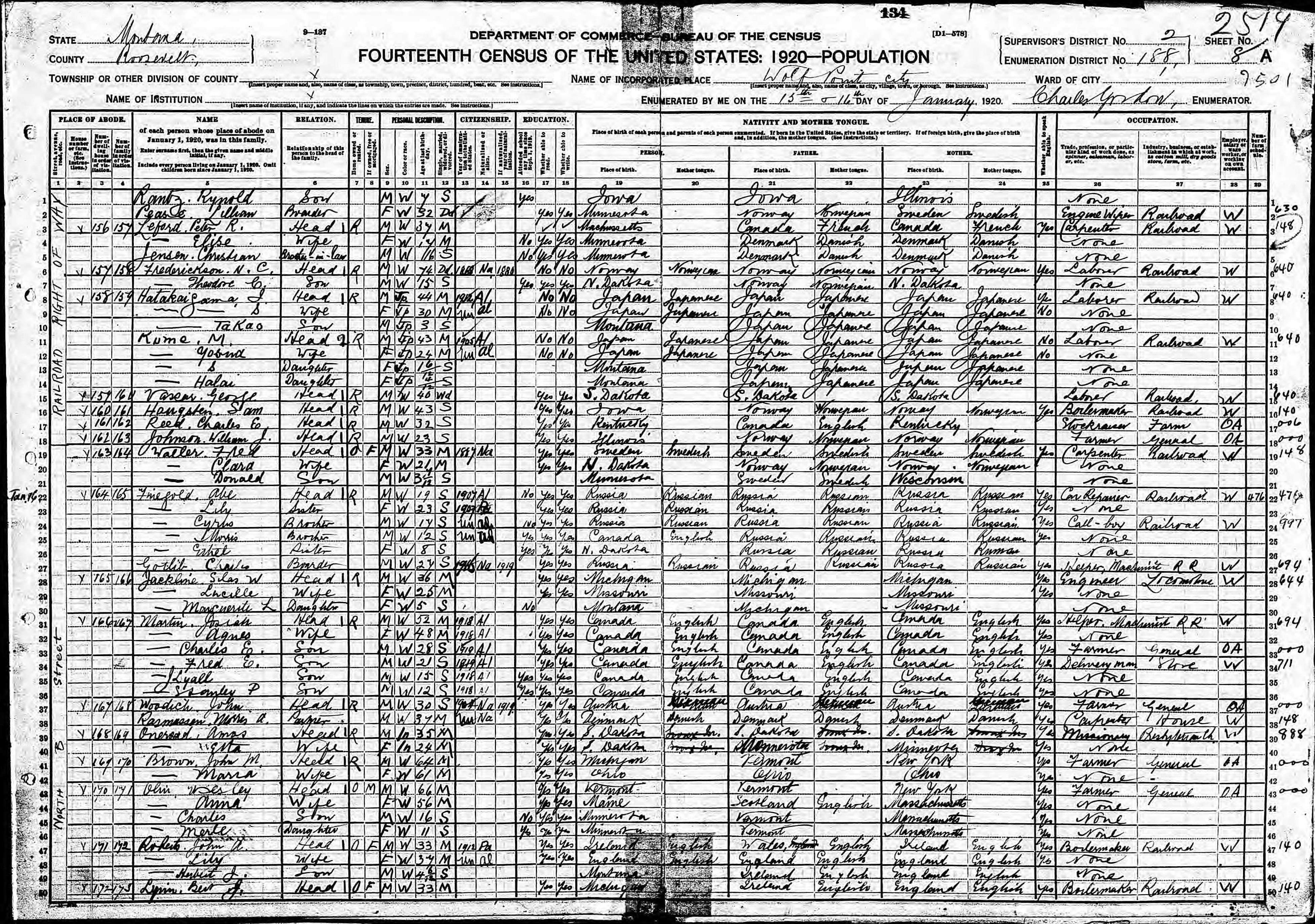 Jackline Family 1920 Federal Census Montana, Lines 28-30
