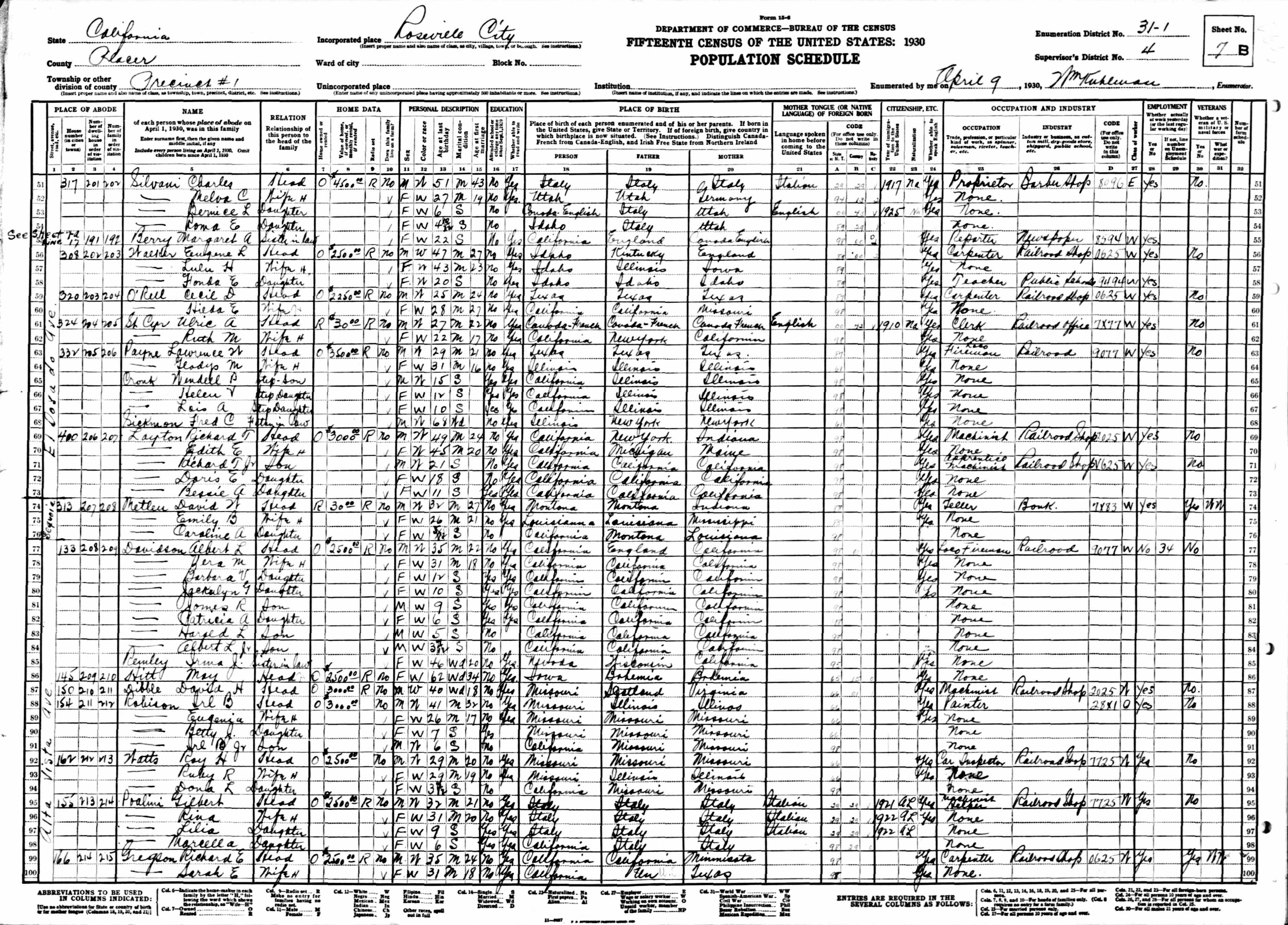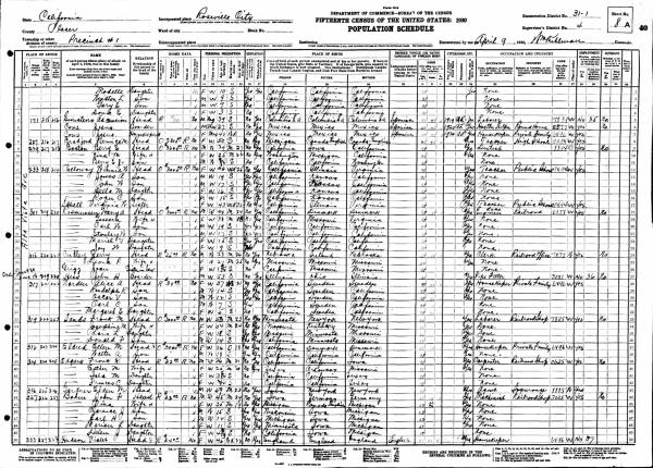 Gregson Family 1930 Federal Census California, Lines 99-100