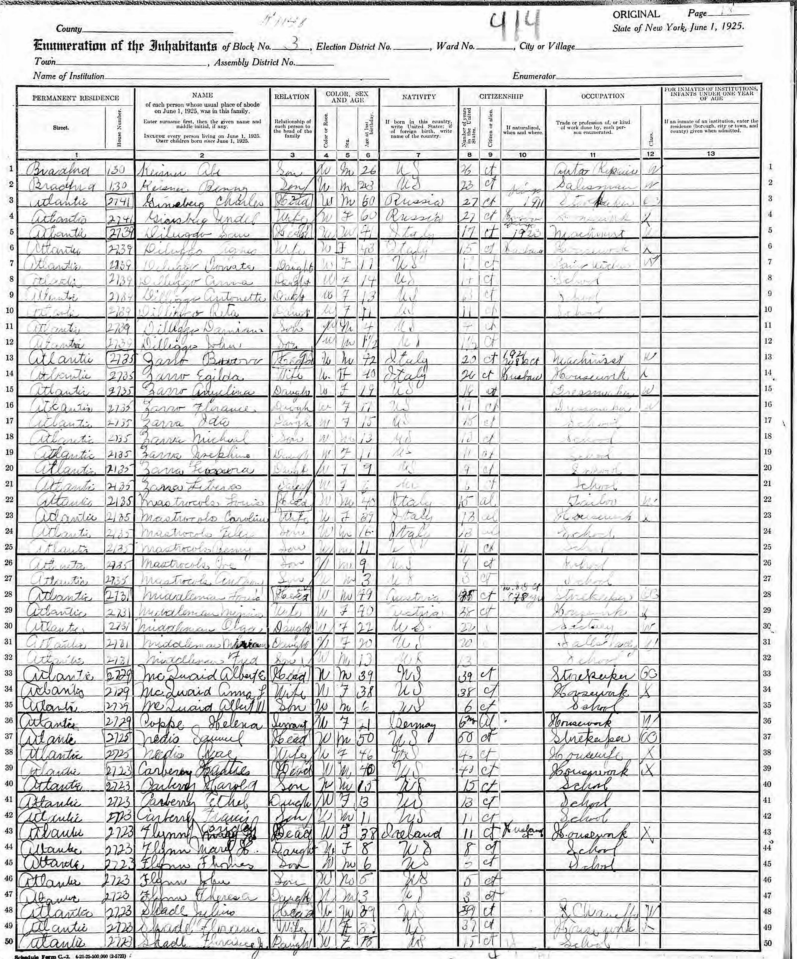 Zarro Family 1920 Federal Census New York, Lines 51-59