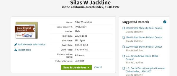 Silas Wesley Jackline was born on July 22, 1883 in Detroit, Wayne, Michigan, USA. He and