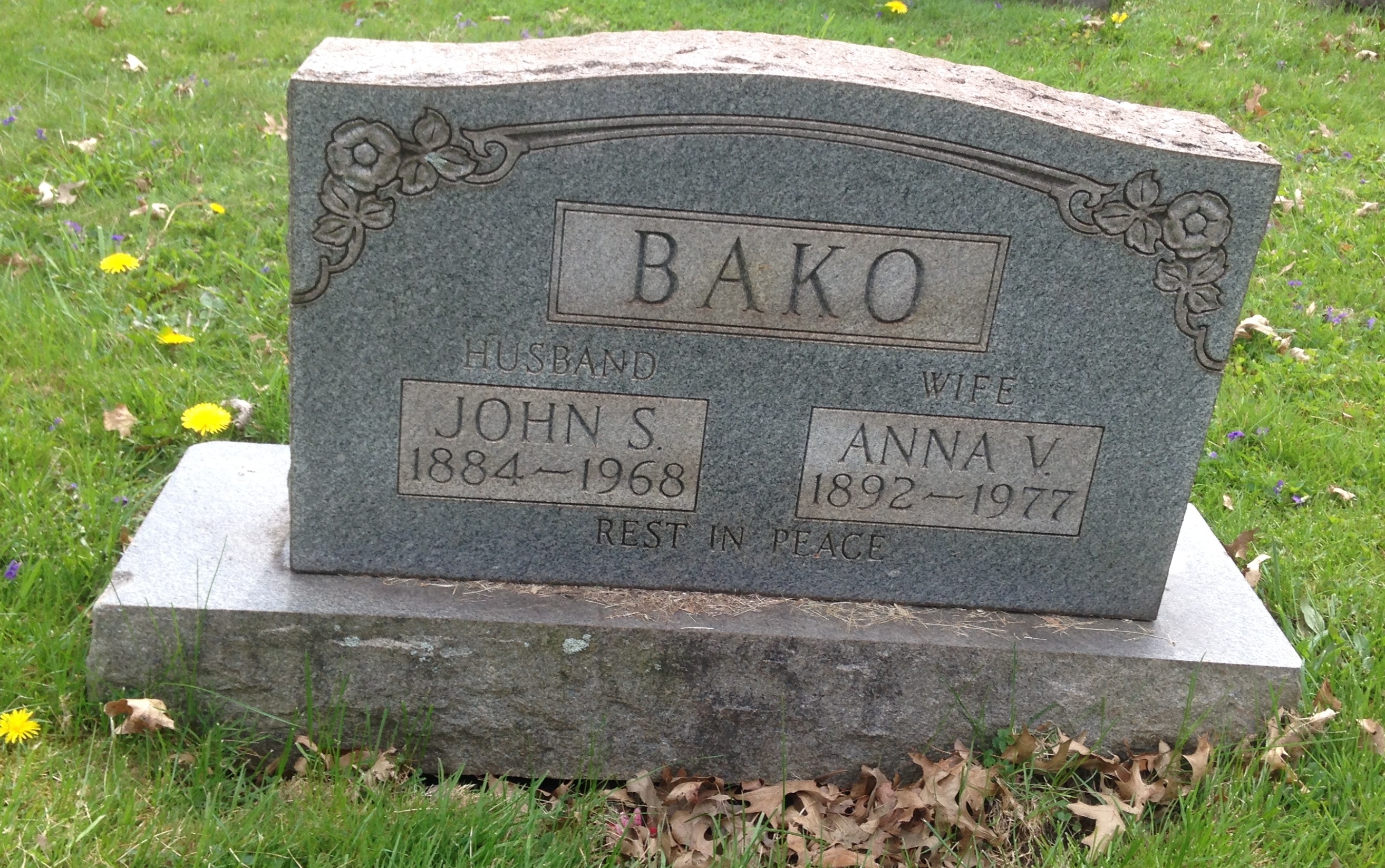 John S. Bako were married in 1910. She died in 1977, at age ~85, in Niles, Trumbull, Ohio, USA. She was buried in Saint Stephen Cemetery, Niles, Ohio.