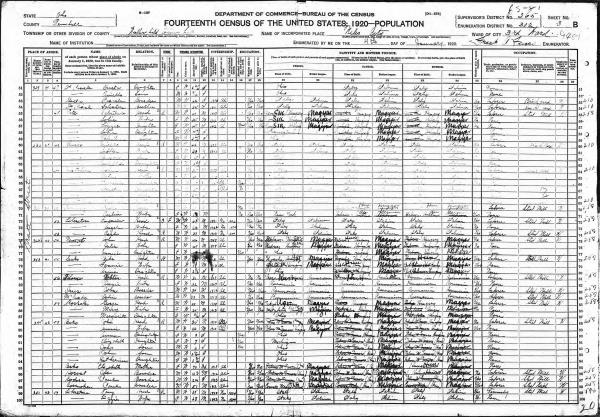 Bako Family 1920 Federal Census, Ohio Lines 88-95