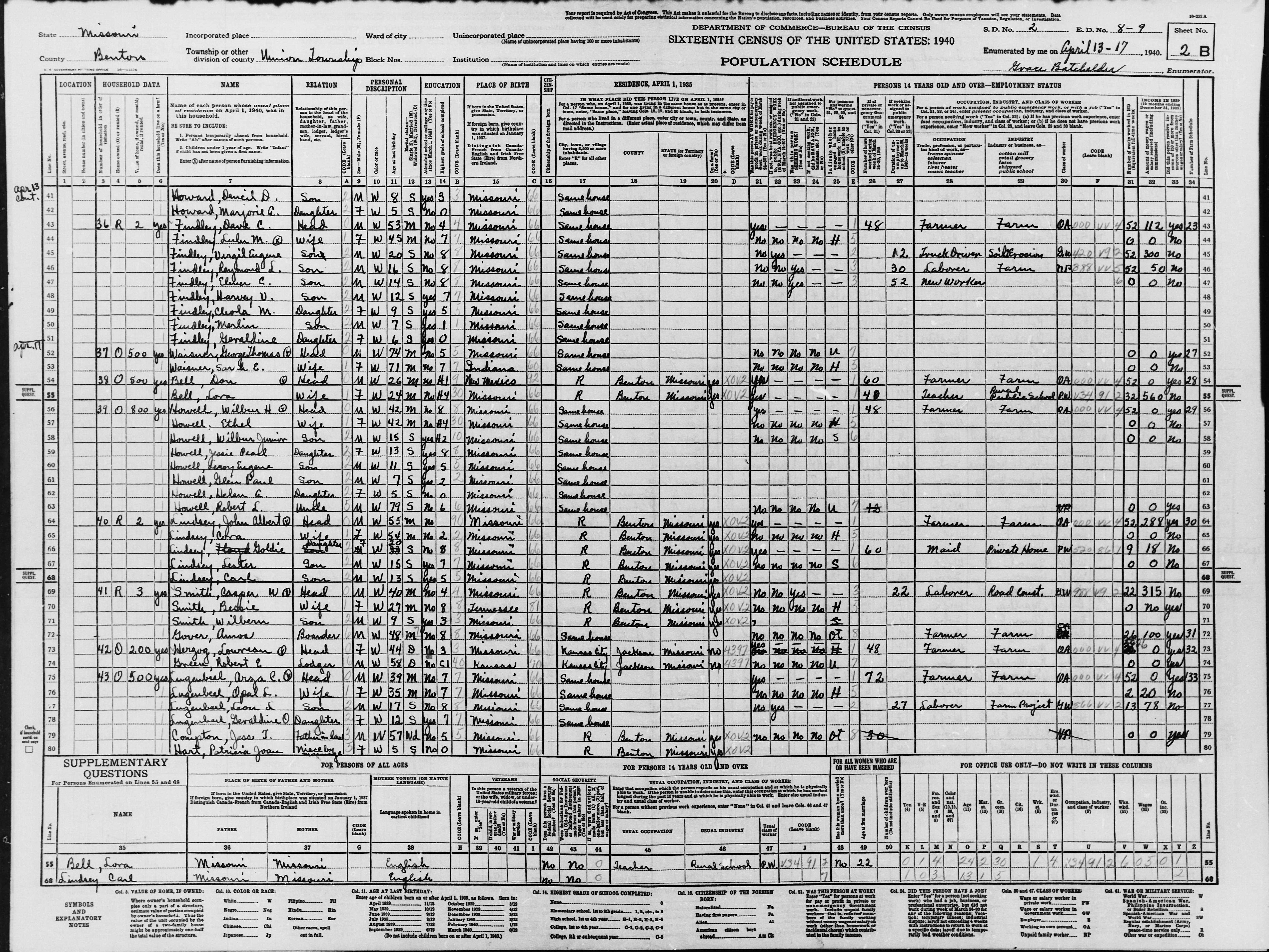 Lugenbeel Family 1940 Federal Census, Missour, Lines 75-80