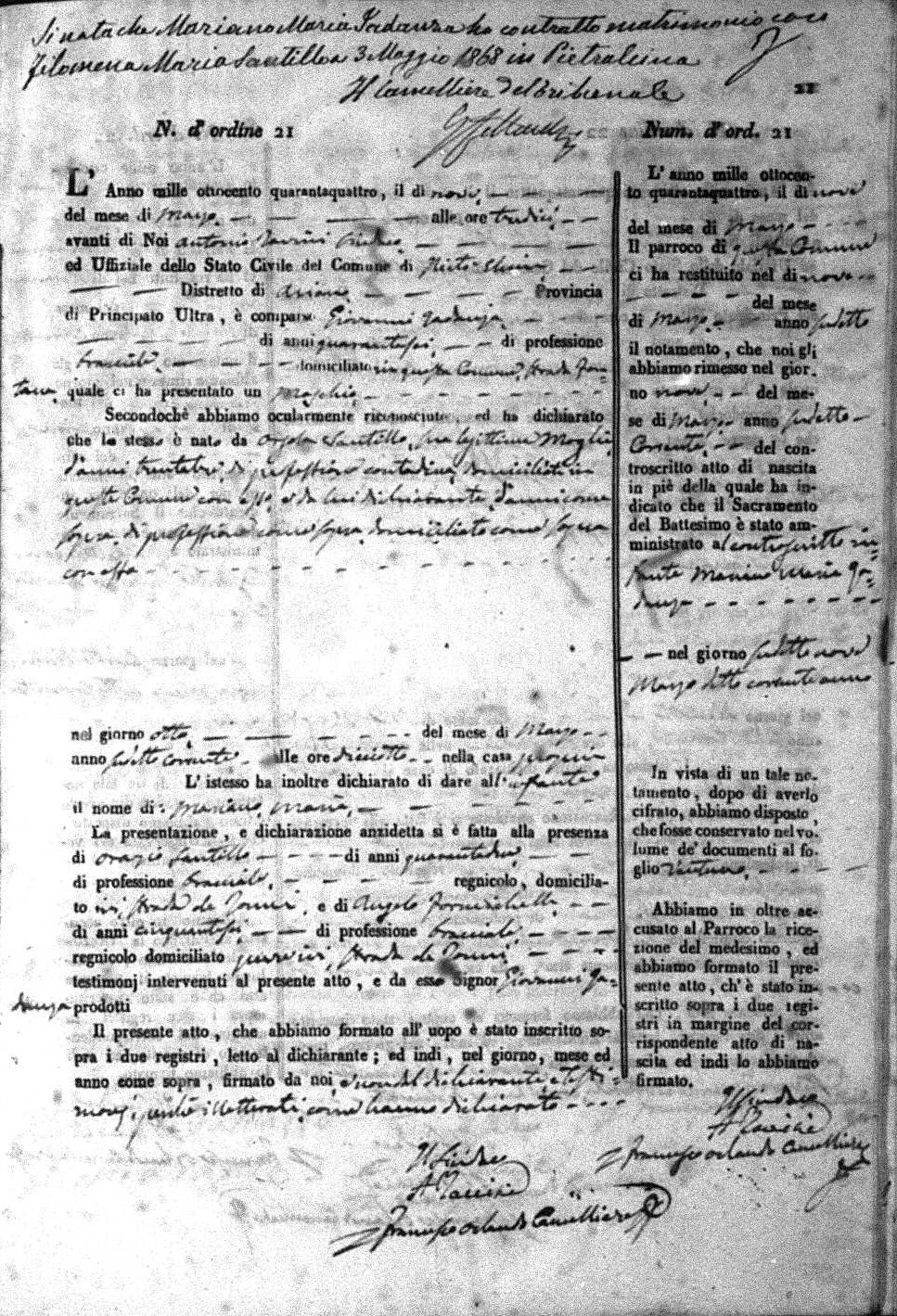 Serafina Maria Iadanza were married on June 8, 1826 in Pietrelcina, Benevento, Campania, Italy. He died.