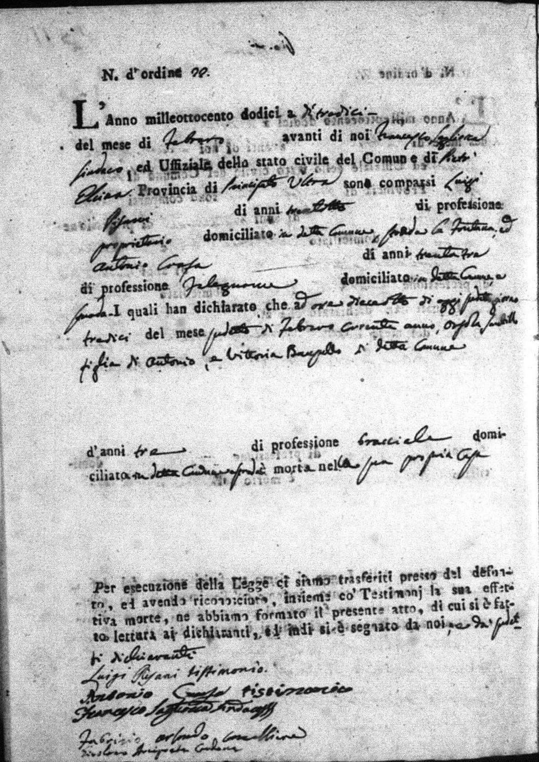 Vittoria Banzullo were married. He died on April 26, 1841, at age ~63, in Pietrelcina, Benevento, Campania, Italy.