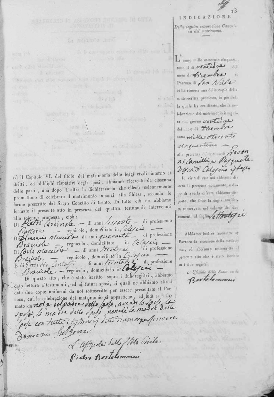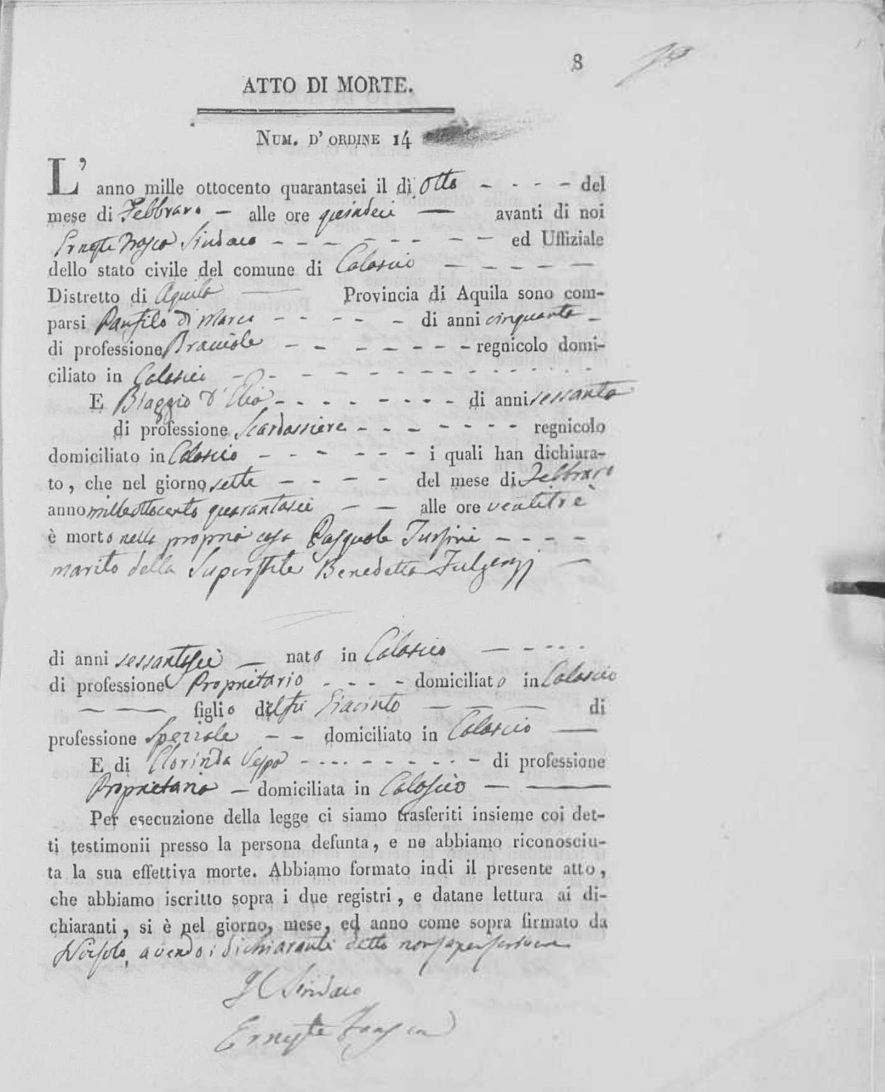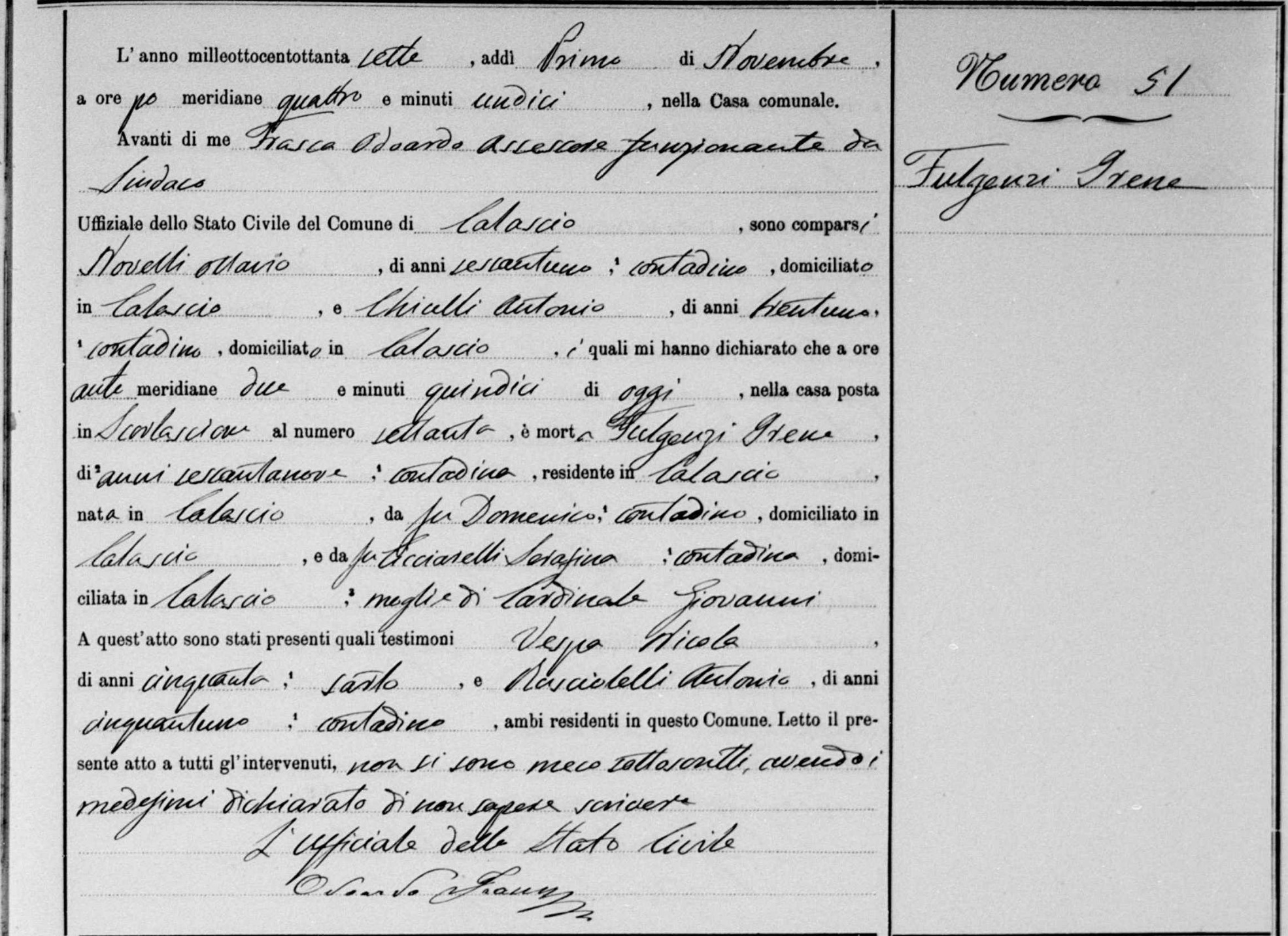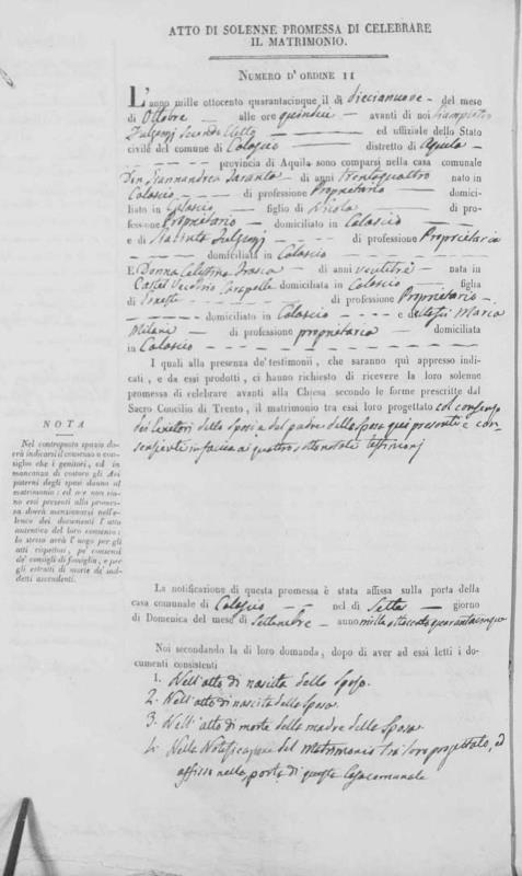 Celestina Frasca were married on October 19, 1845 in Calascio, L'Aquila, Abruzzo, Italy. He died.