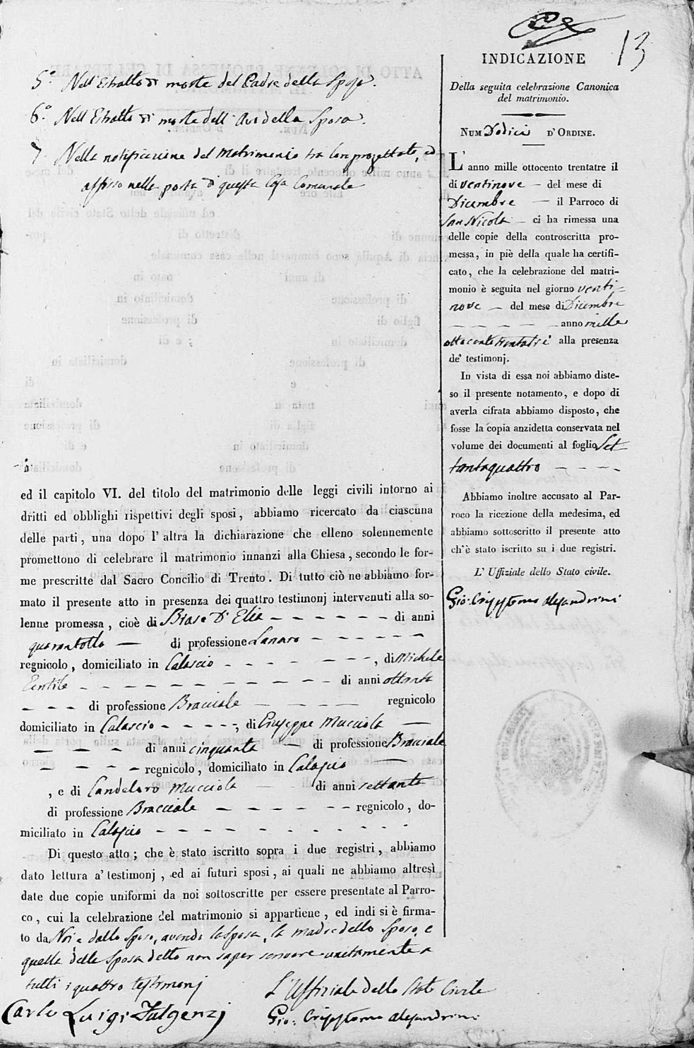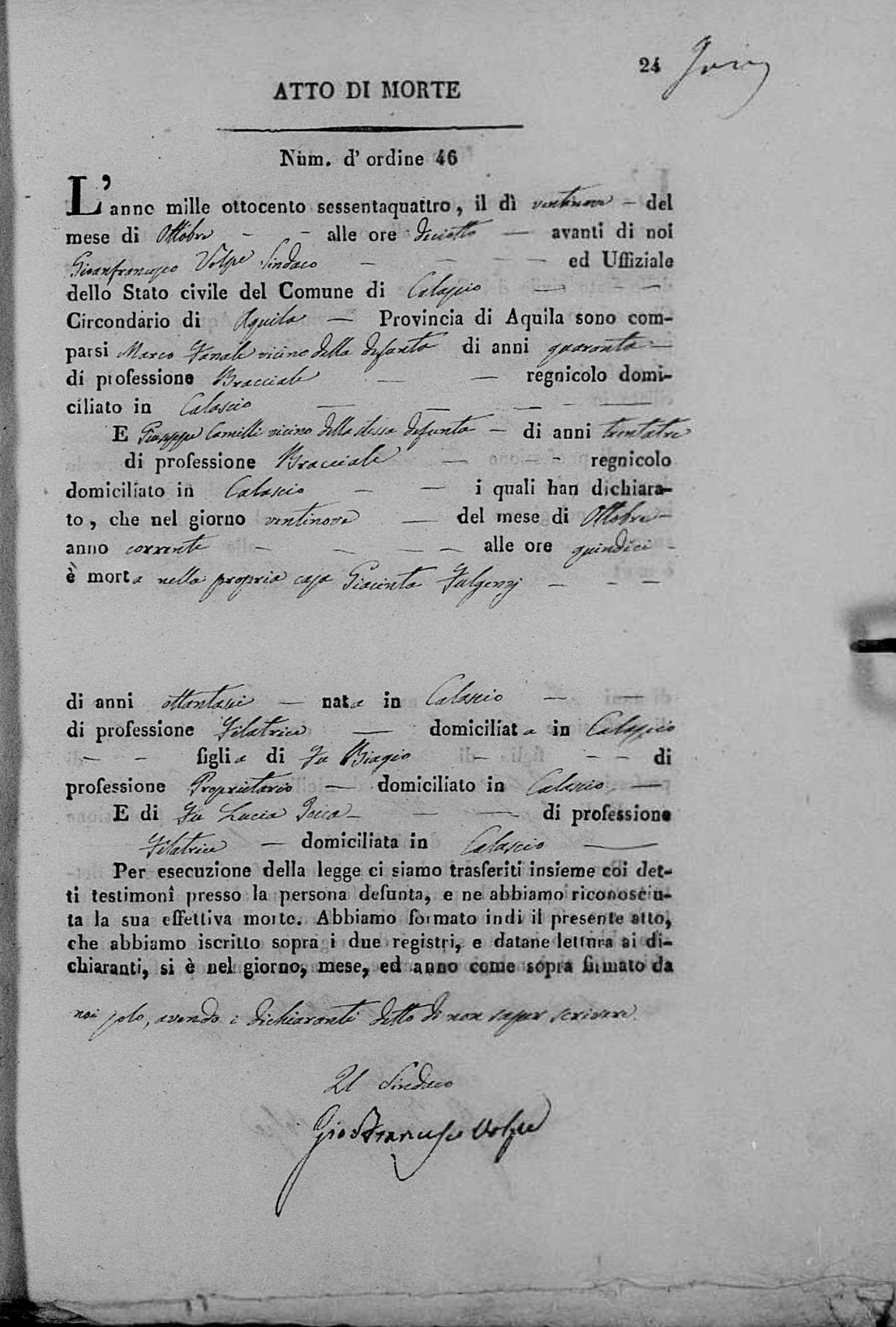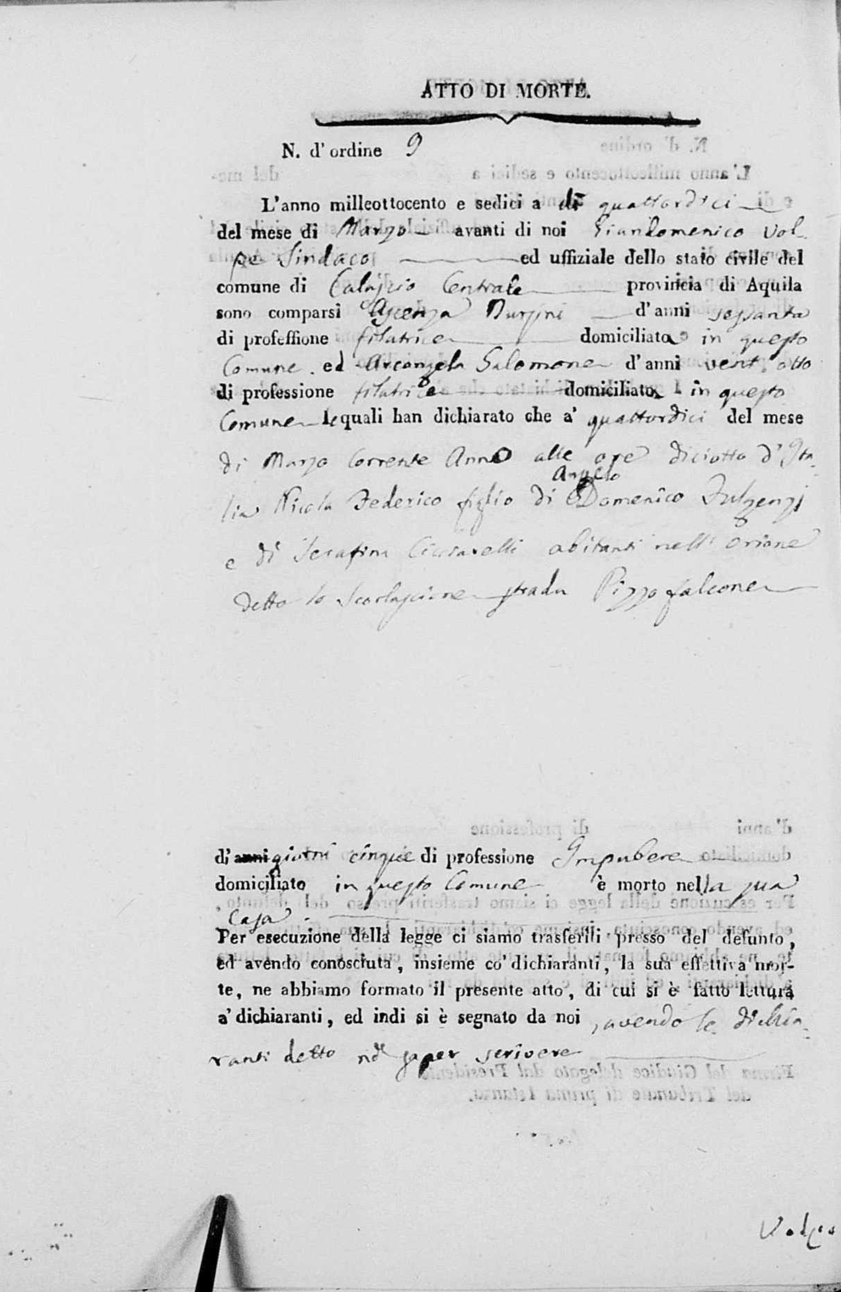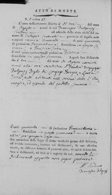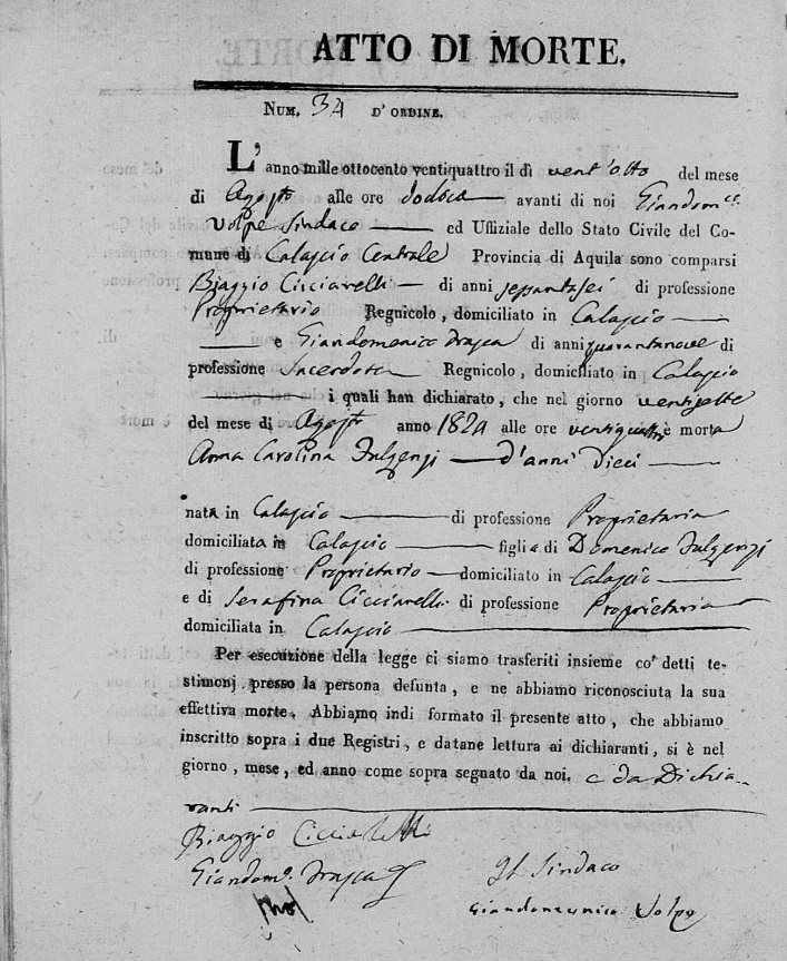 Angelo Domenico Fulgenzi were married on October 28, 1810 in Calascio, L'Aquila, Abruzzo, Italy. She died.
