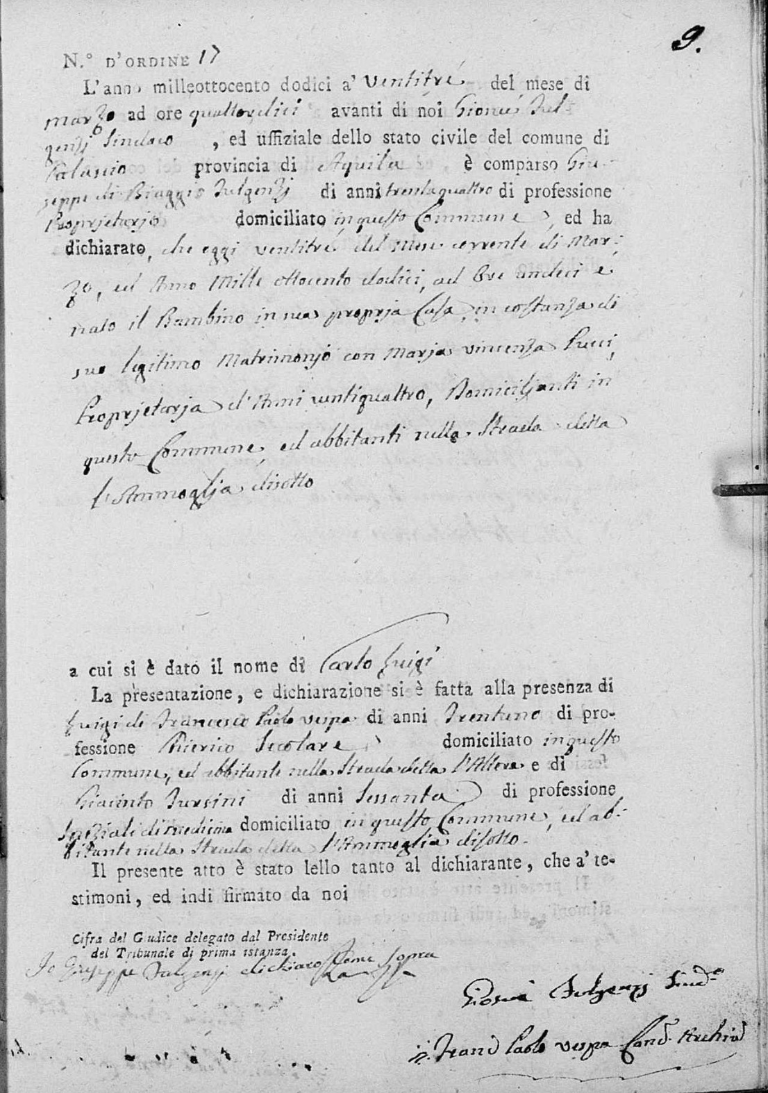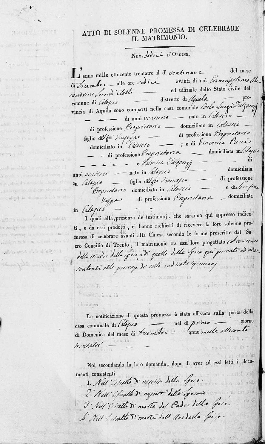 Carlo Luigi Fulgenzi was born on March 23, 1812 in Calascio, L'Aquila, Abruzzo, Italy. He and