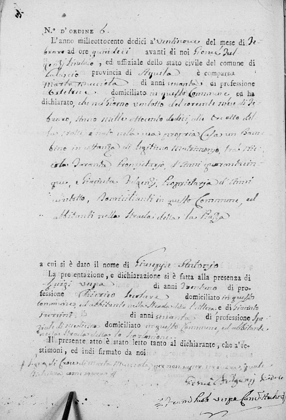 Giovanni Andrea Taranta was born on February 19, 1810 in Calascio, L'Aquila, Abruzzo, Italy. He and