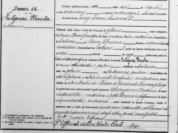 Anna Nicola Capranica were married on June 11, 1856 in Calascio, L'Aquila, Abruzzo, Italy. He died.