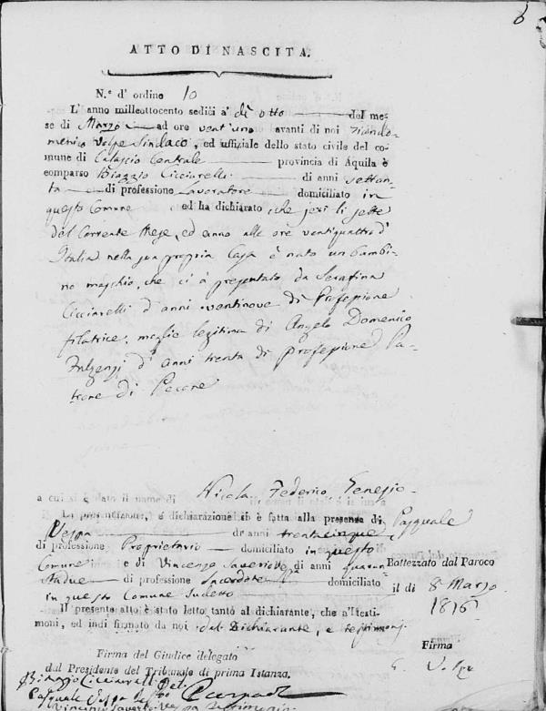 Nicola Taranta was born in 1770 in Calascio, L'Aquila, Abruzzo, Italy. He and