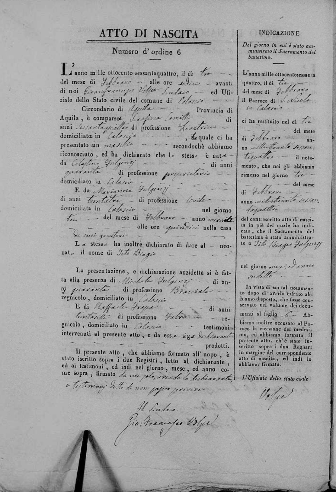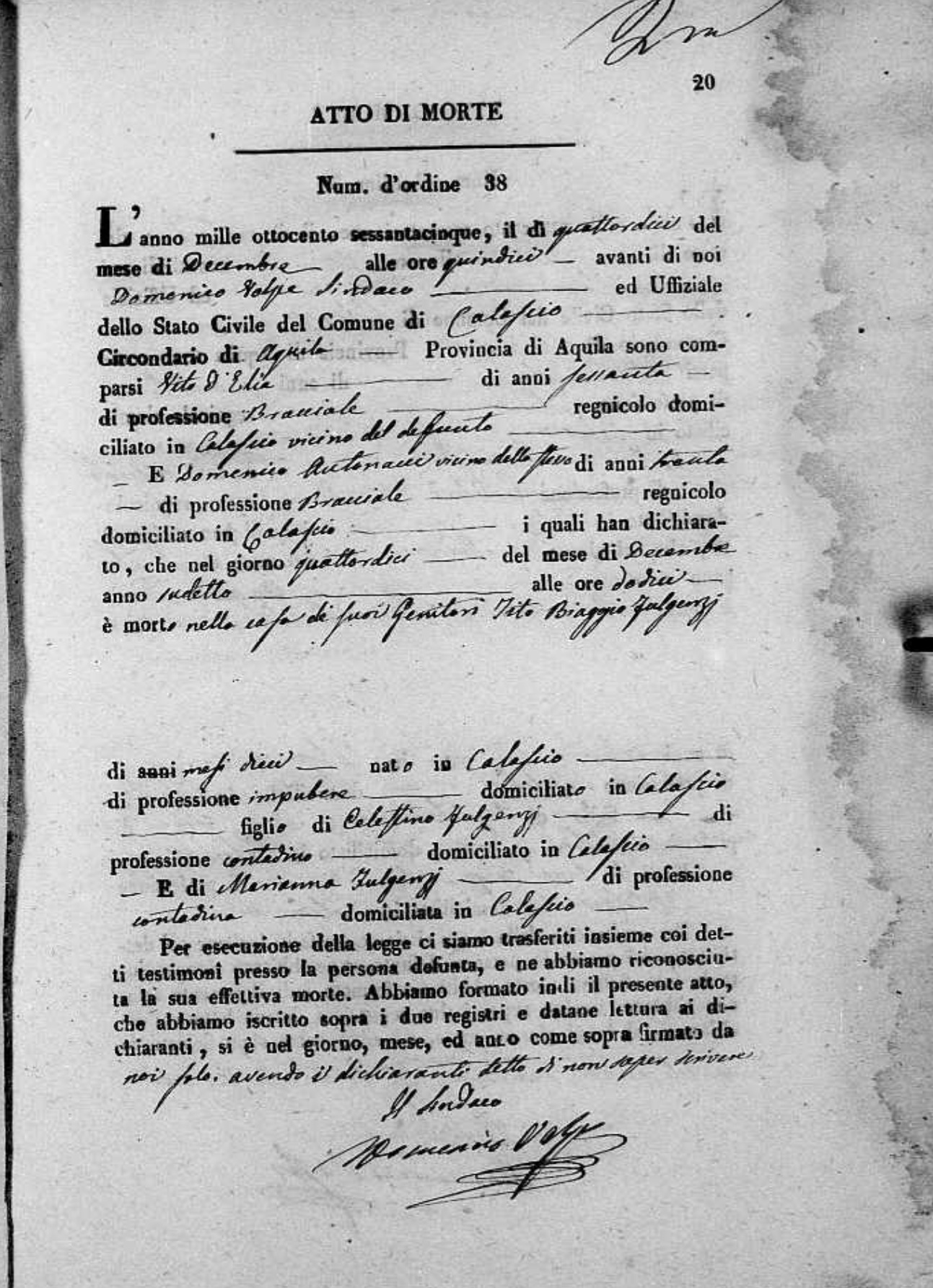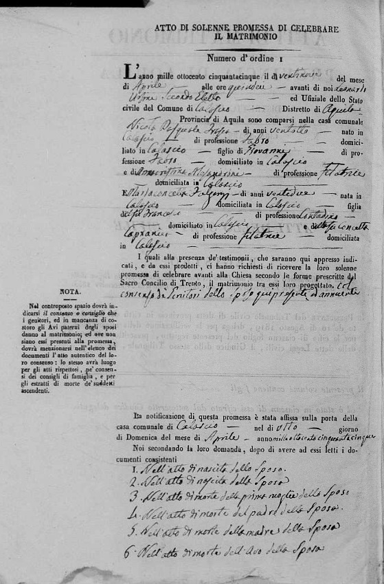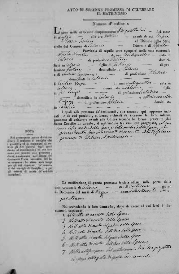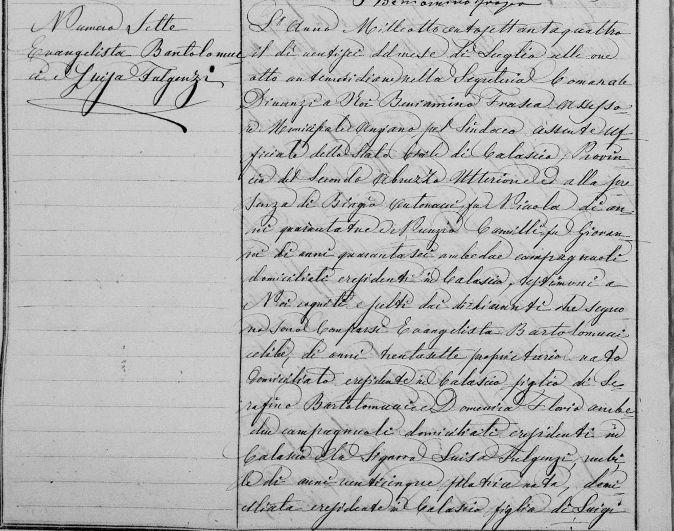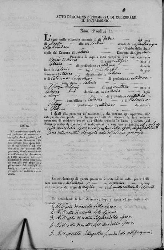 Maria Nunzia Fulgenzi were married on August 12, 1860 in Calascio, L'Aquila, Abruzzo, Italy. He died.